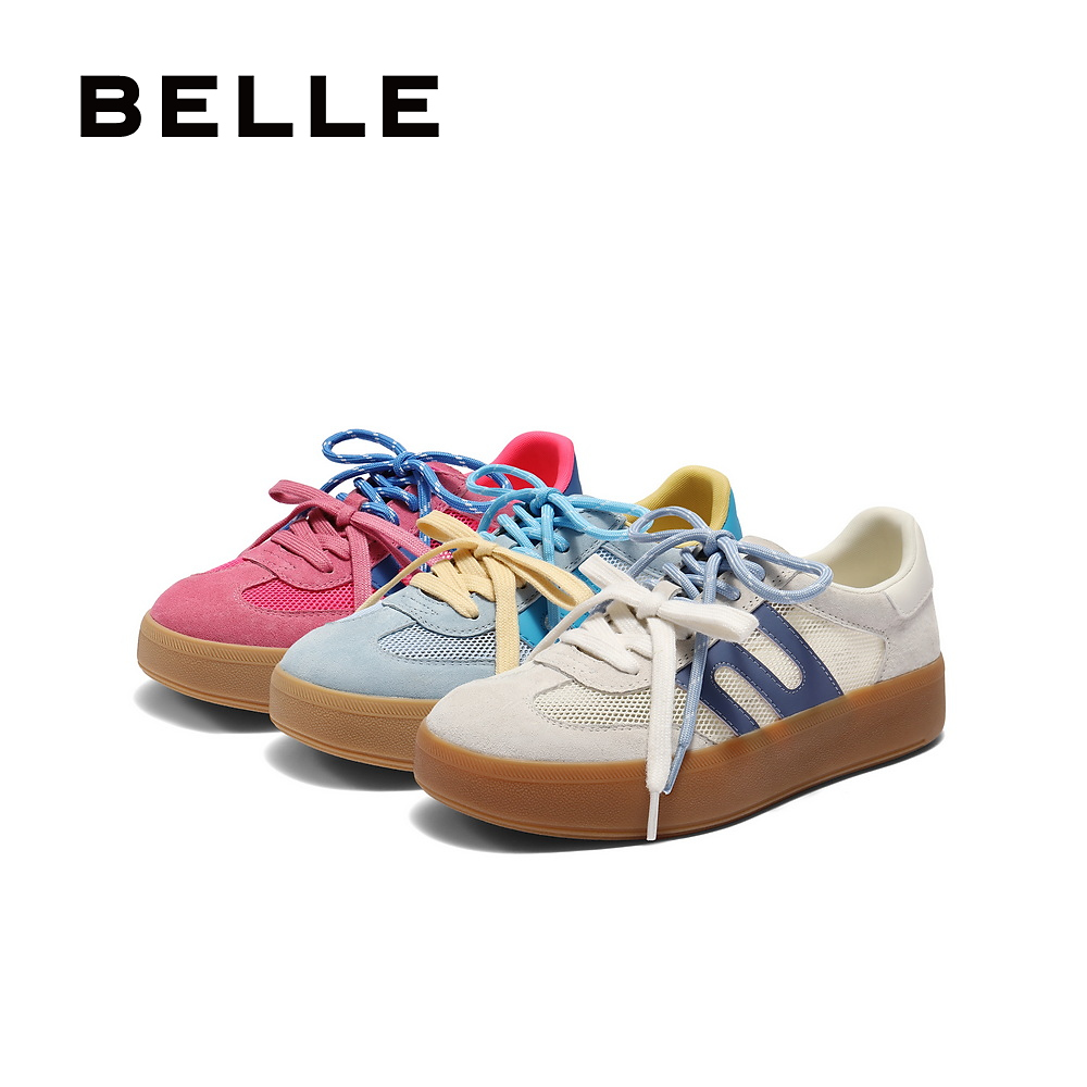 百丽潮流撞色德训鞋女2025夏新双鞋带透气网休闲鞋B2721BM5