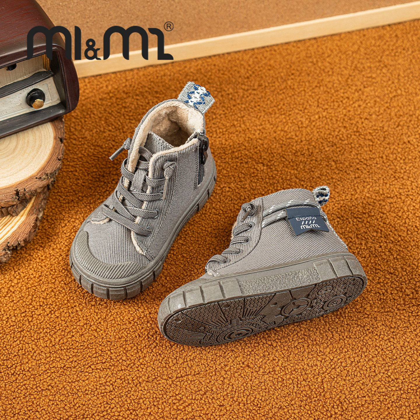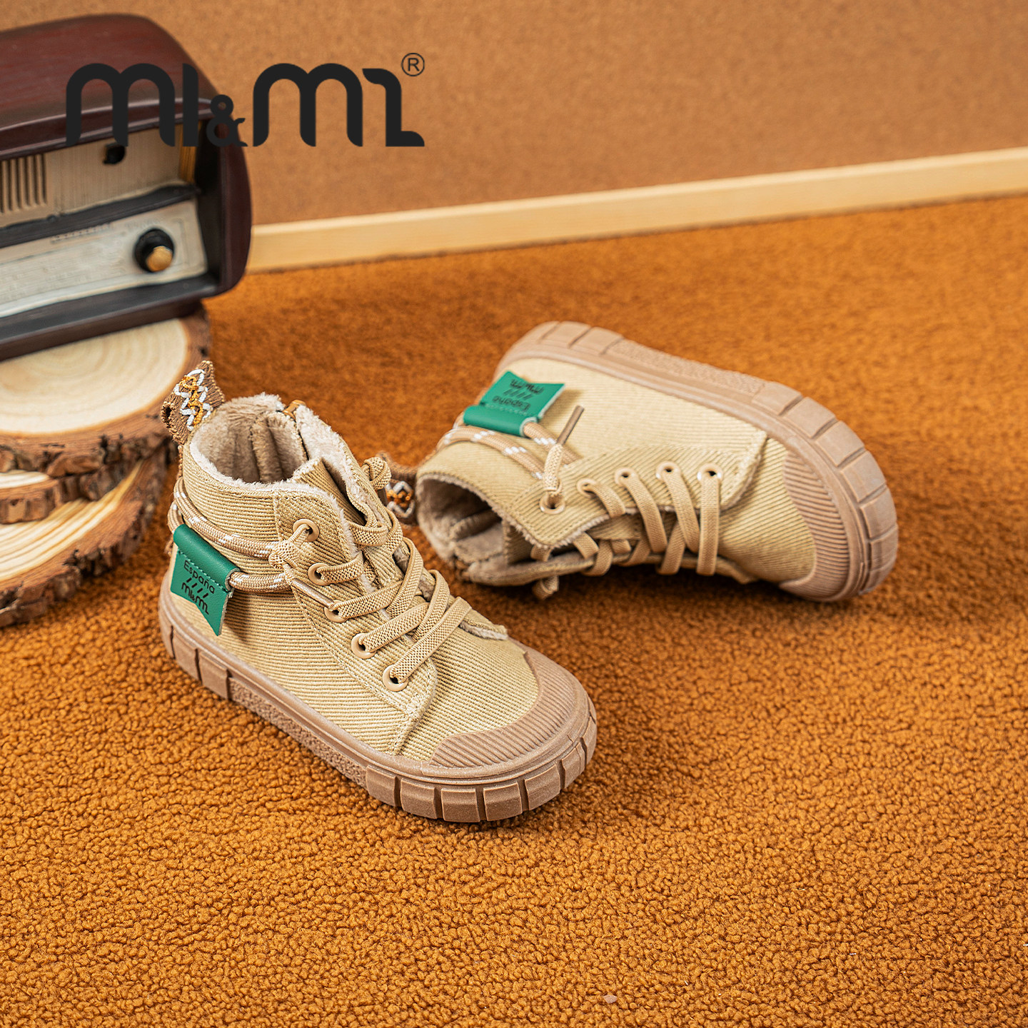 m1m2西班牙童鞋男女童棉鞋冬季加绒侧拉链中筒短靴休闲保暖高帮鞋