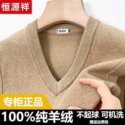 恒源祥背心马甲男士100纯羊绒V领套头无袖毛衣中年纯色针织打底衫