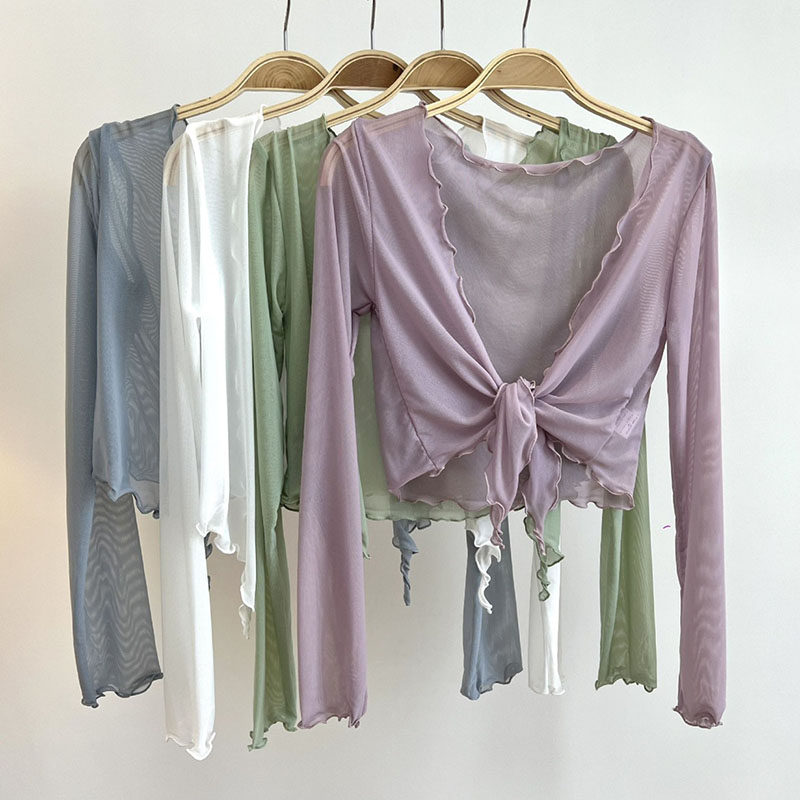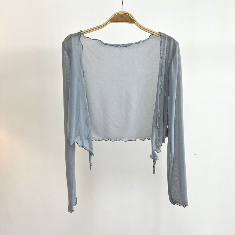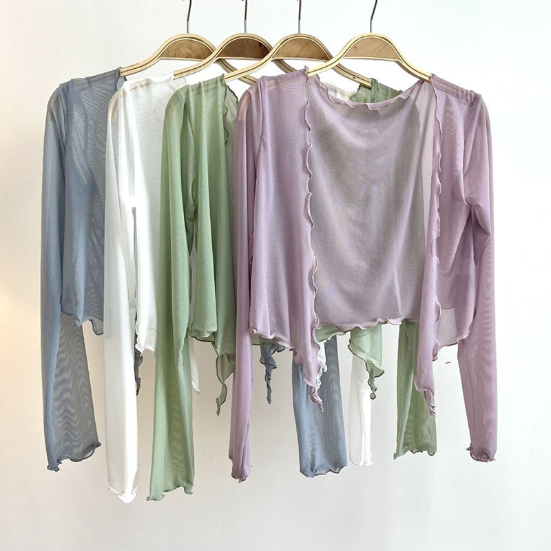 木耳边冰丝针织开衫女夏季薄款小披肩网纱防晒外套v领外搭配裙子