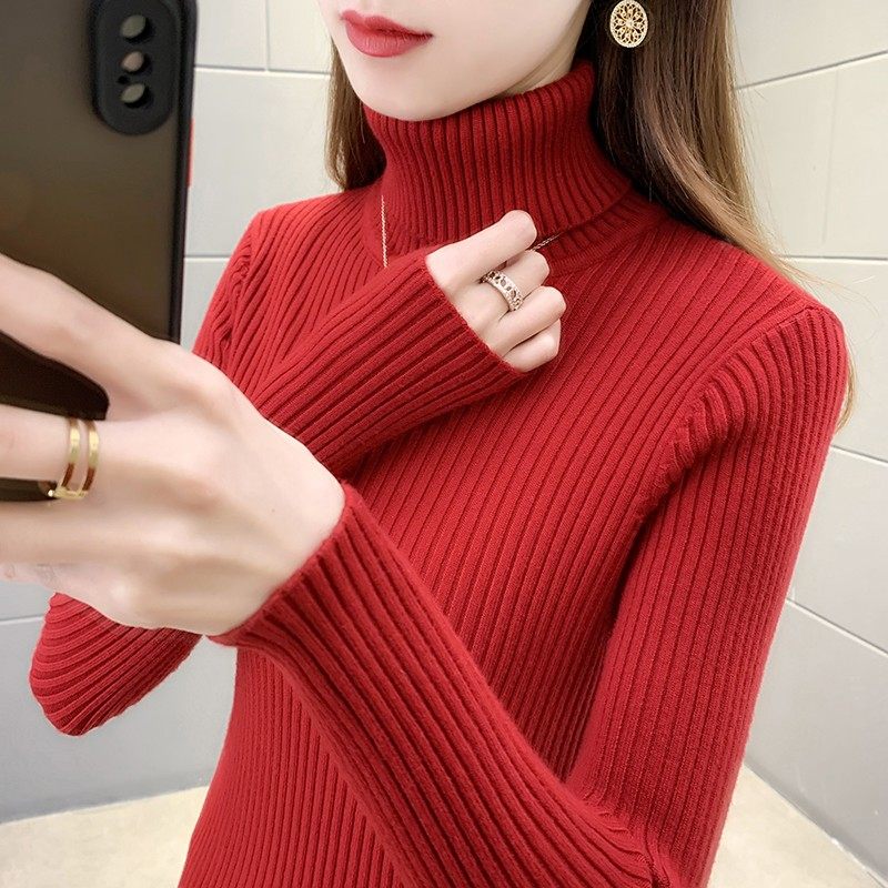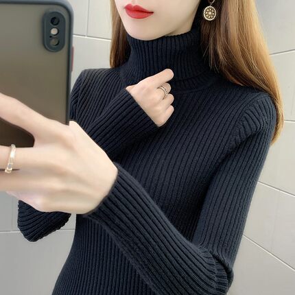 高领修身针织衫毛衣女2025秋冬季新款套头内搭长袖加厚保暖打底衫