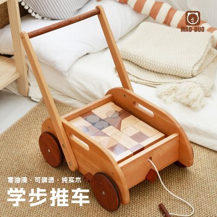 儿童宝宝推车玩具实木婴儿学步车6到18个月学走路助步车周岁礼物