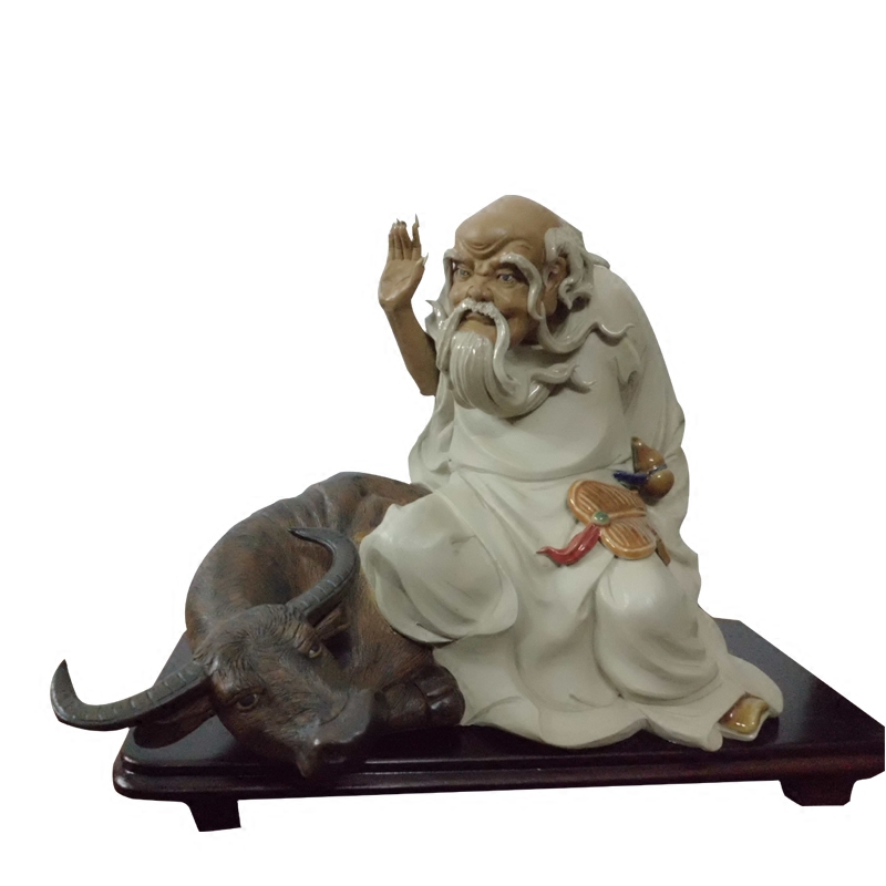 休闲老子牛 陶瓷工艺品创意摆件石湾公仔大师精品 家居装饰品礼品