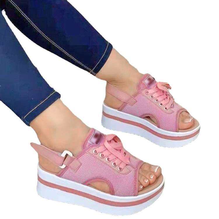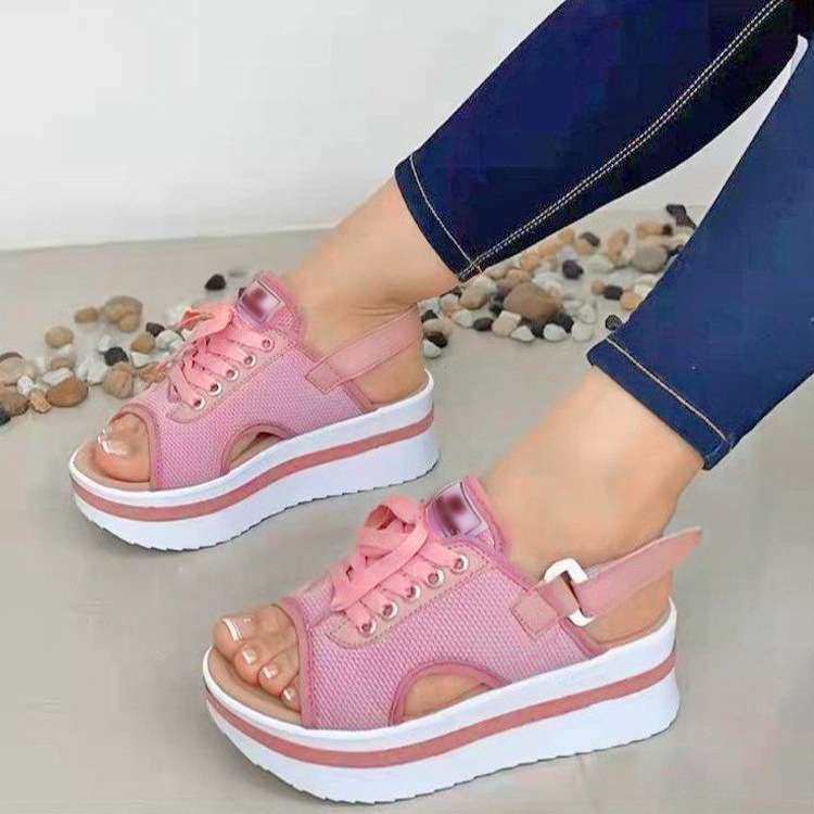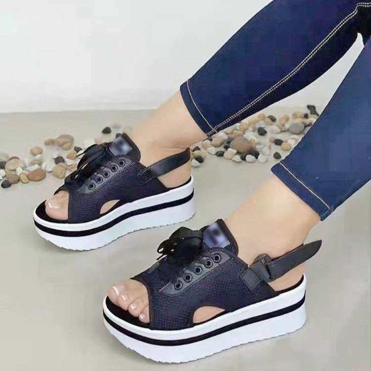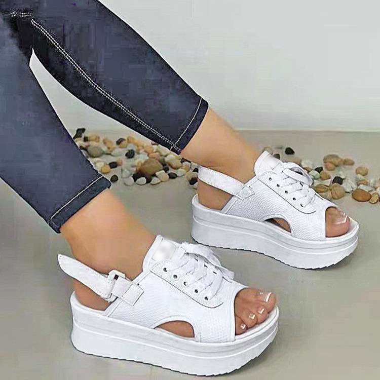women shoes款欧美大码凉鞋女厚底鱼嘴魔术贴休闲沙滩鞋凉鞋2024