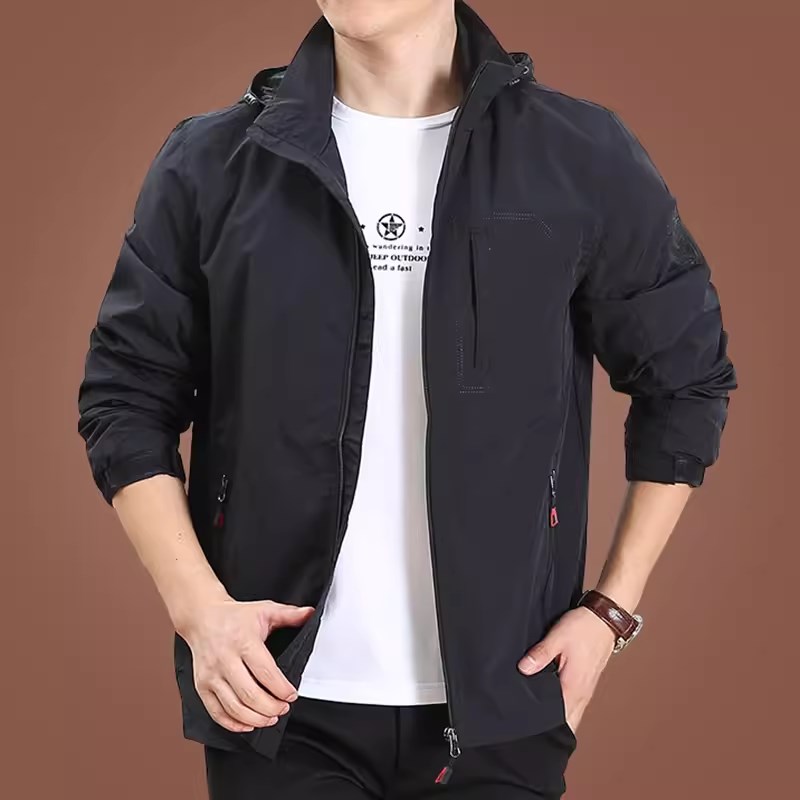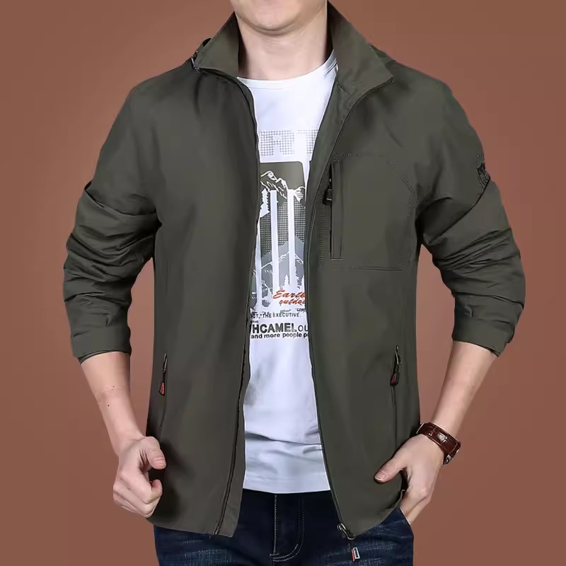 春秋季薄款外套冲锋衣休闲宽松夹克上衣青中老年男装大码多袋衣服