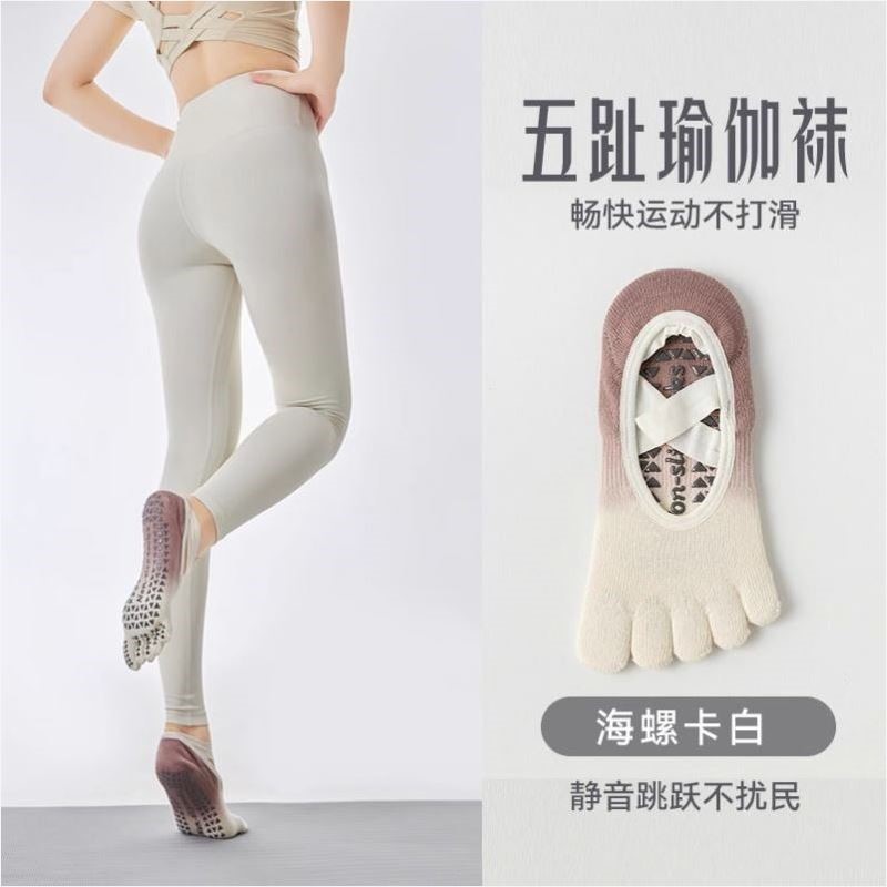 宏克佳新款渐层绑带瑜伽袜子防滑专业女五指袜普拉提袜薄款点胶