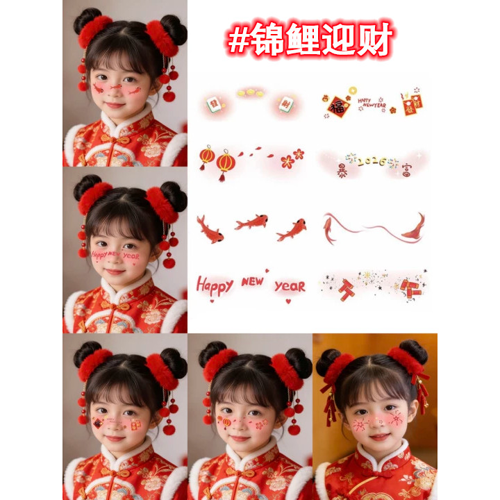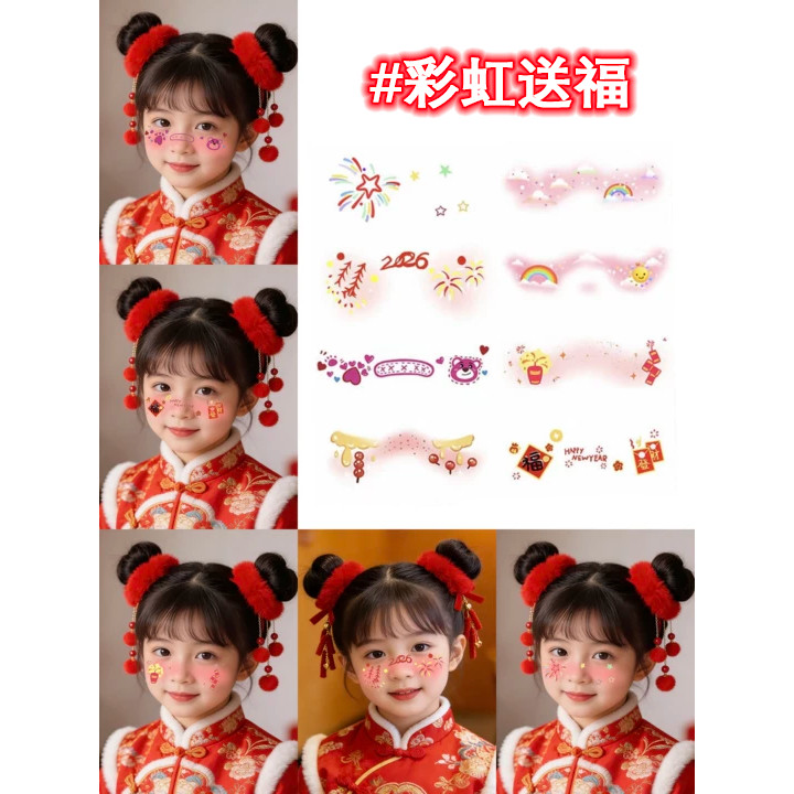 新年妆容贴马年脸贴成人儿童脸部彩绘甜美少女聚会派对腮红化妆贴纸防水纹身贴女节日装扮新年拍照氛围感道具