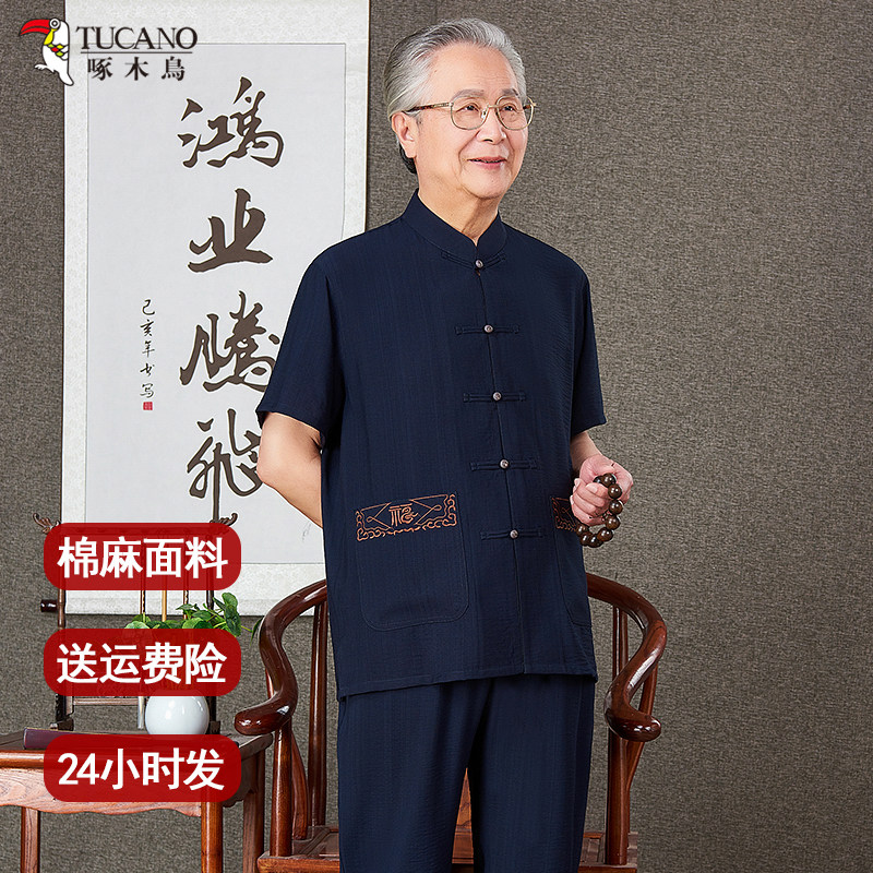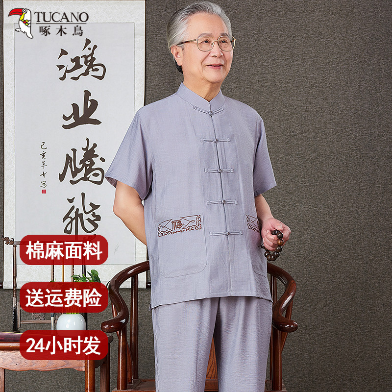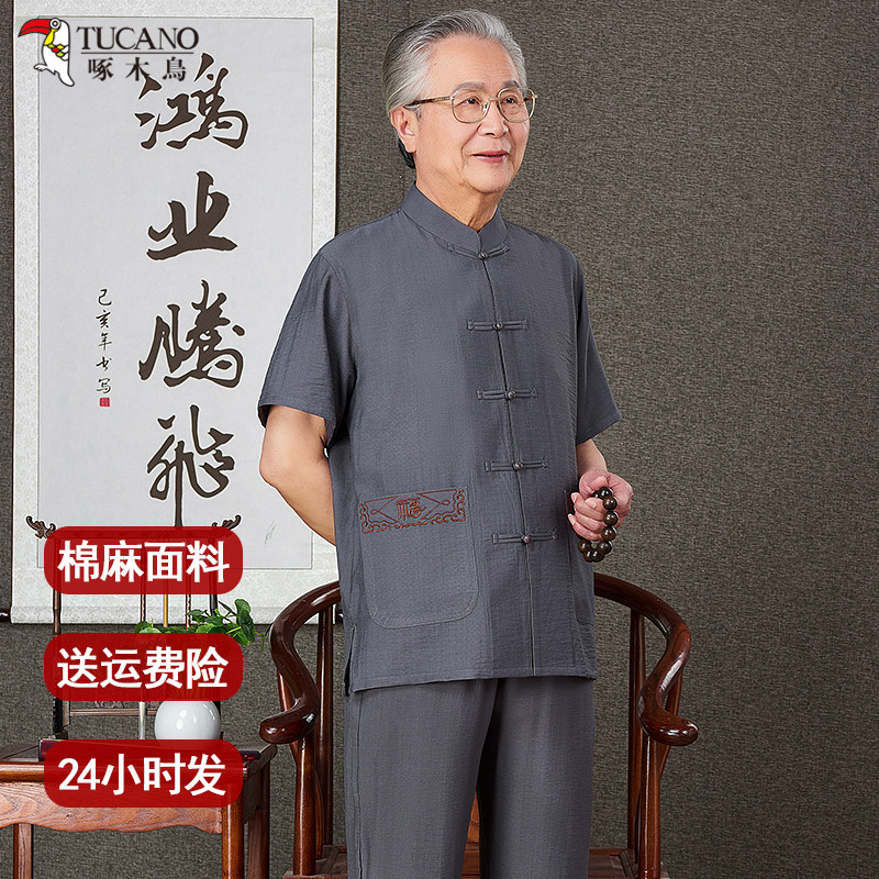 啄木鸟中老年棉麻唐装爸爸过寿