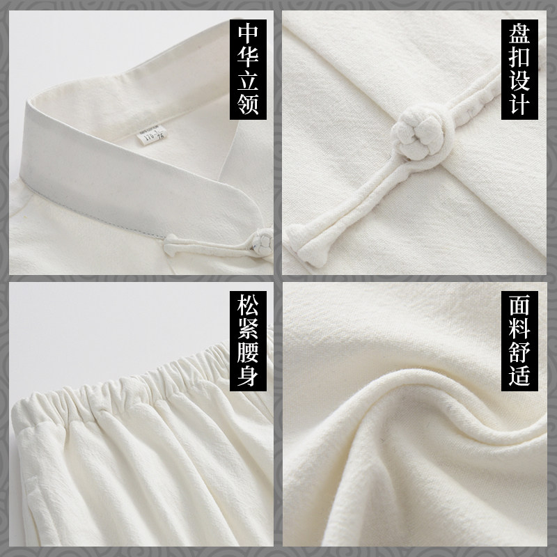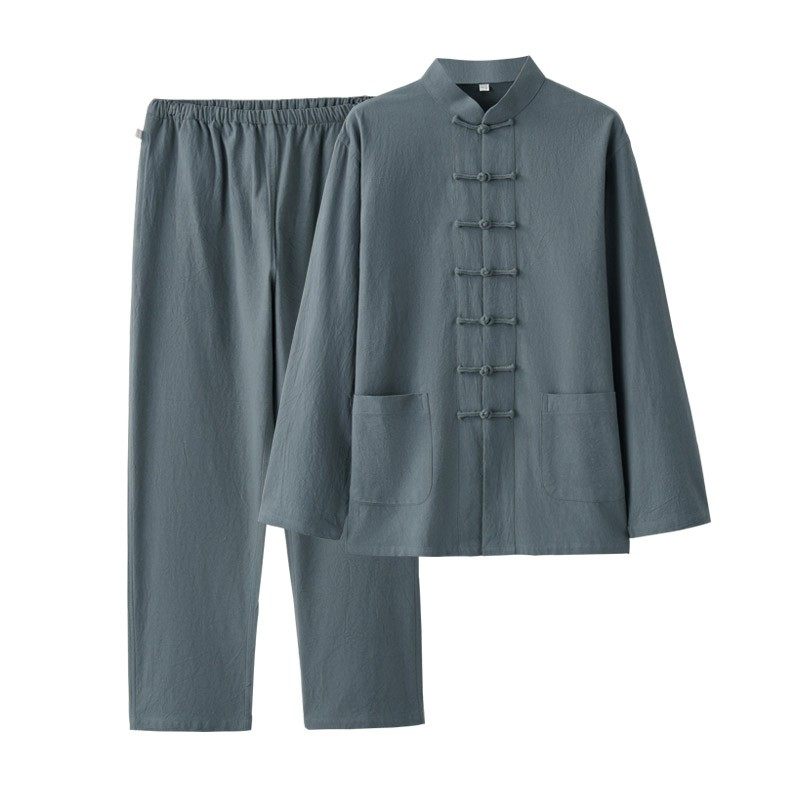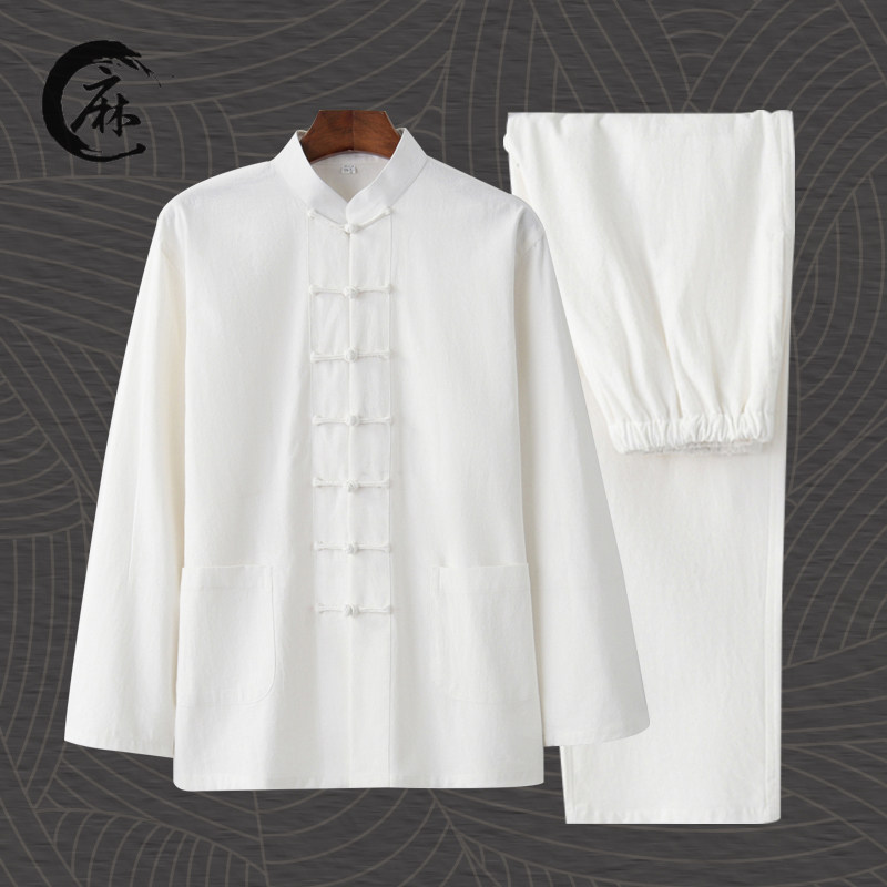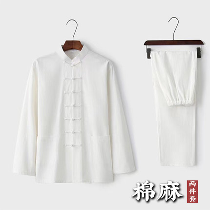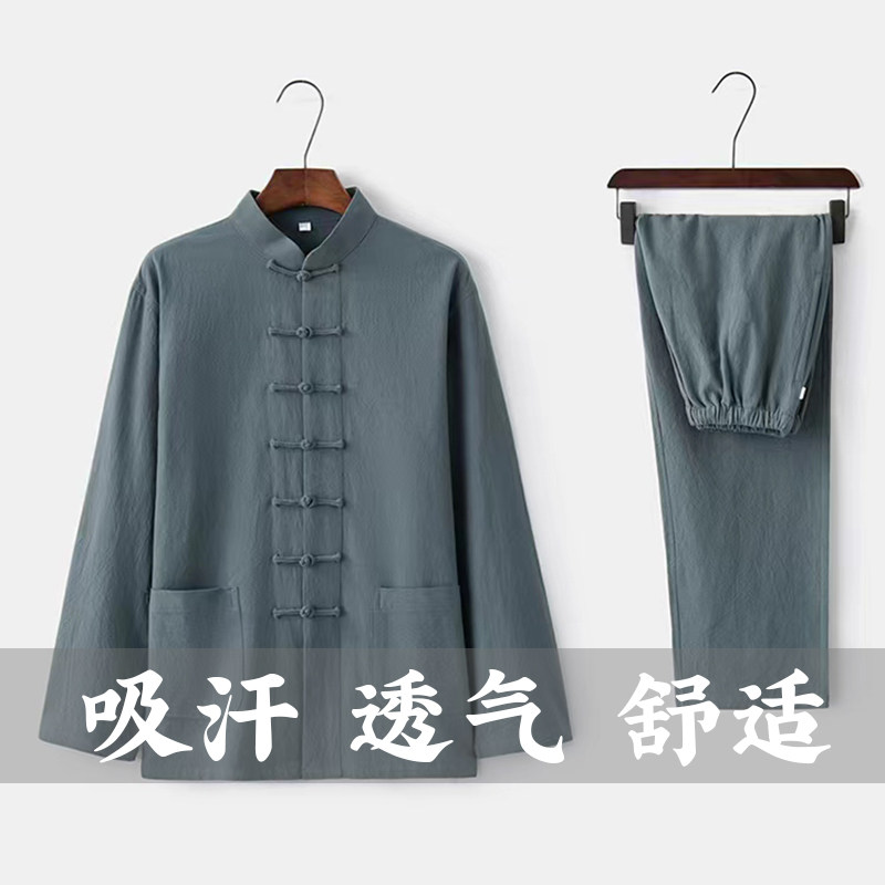 唐装男春秋款中国风长袖中老年棉麻套装晨练太极功夫禅修居士茶服