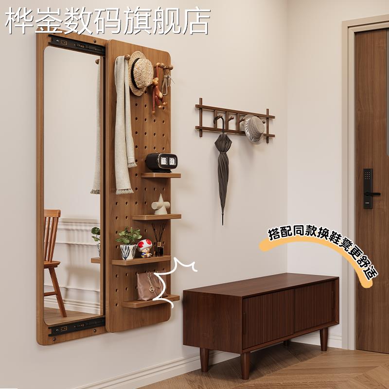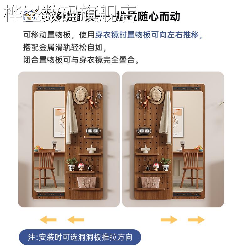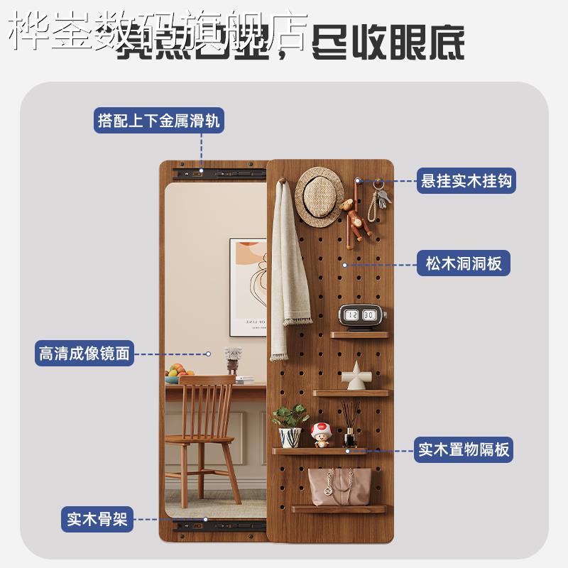 桦崟实木洞洞板隐形穿衣镜可关闭隐藏推拉全身镜子壁挂贴墙玄关试衣镜摆件垫垫