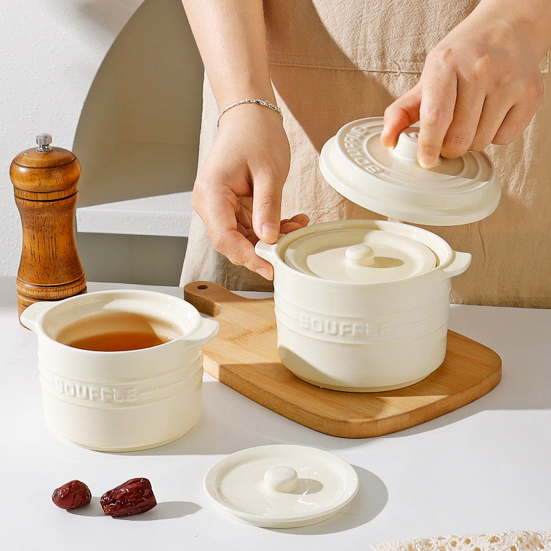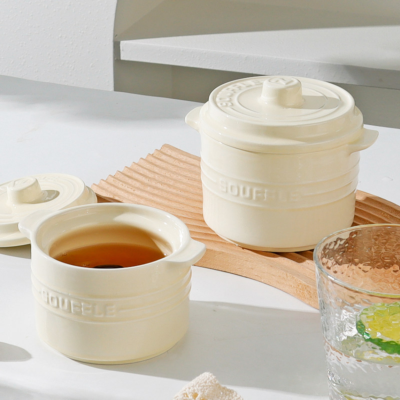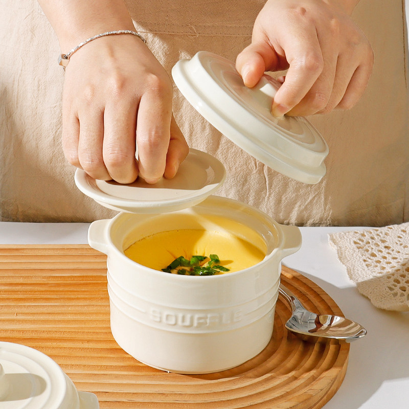 陶瓷双耳炖盅带盖隔水家用瓦罐汤燕窝蒸盅炖罐小汤盅大号双盖蒸碗