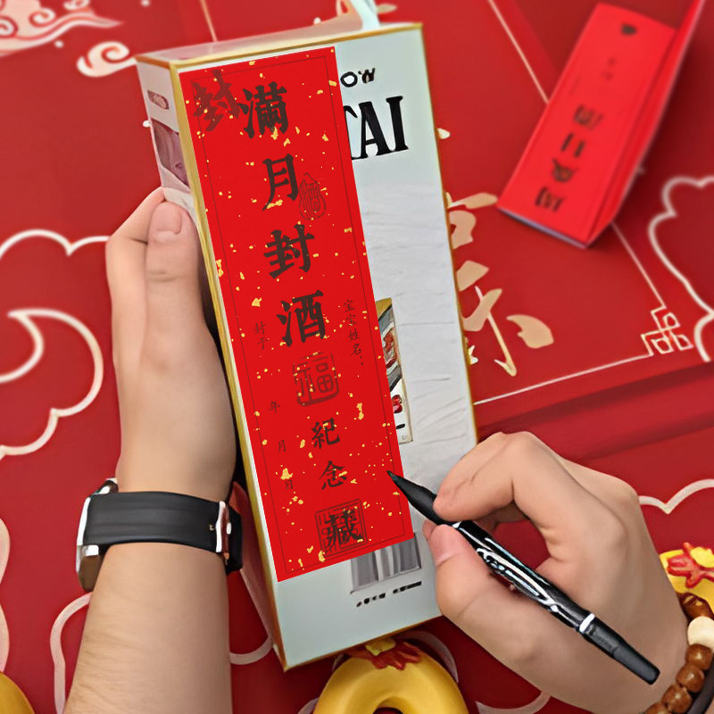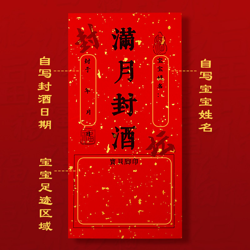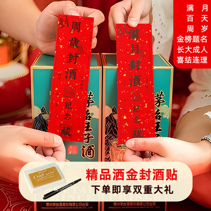宝宝周岁封坛酒封酒贴纸手足印满月弥月封酒条标签百天百日封酒专用套装相框百岁藏酒生日宴纪念存酒封贴