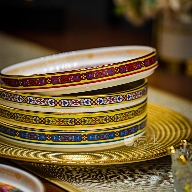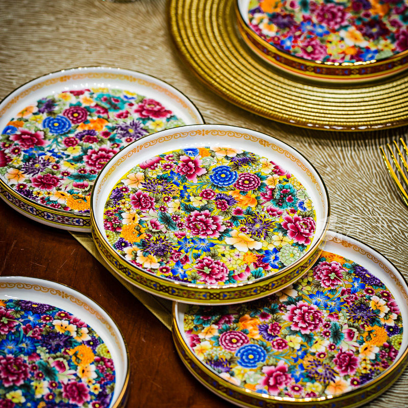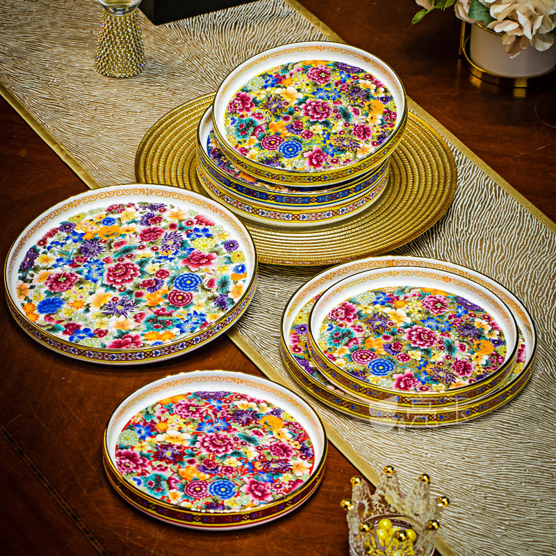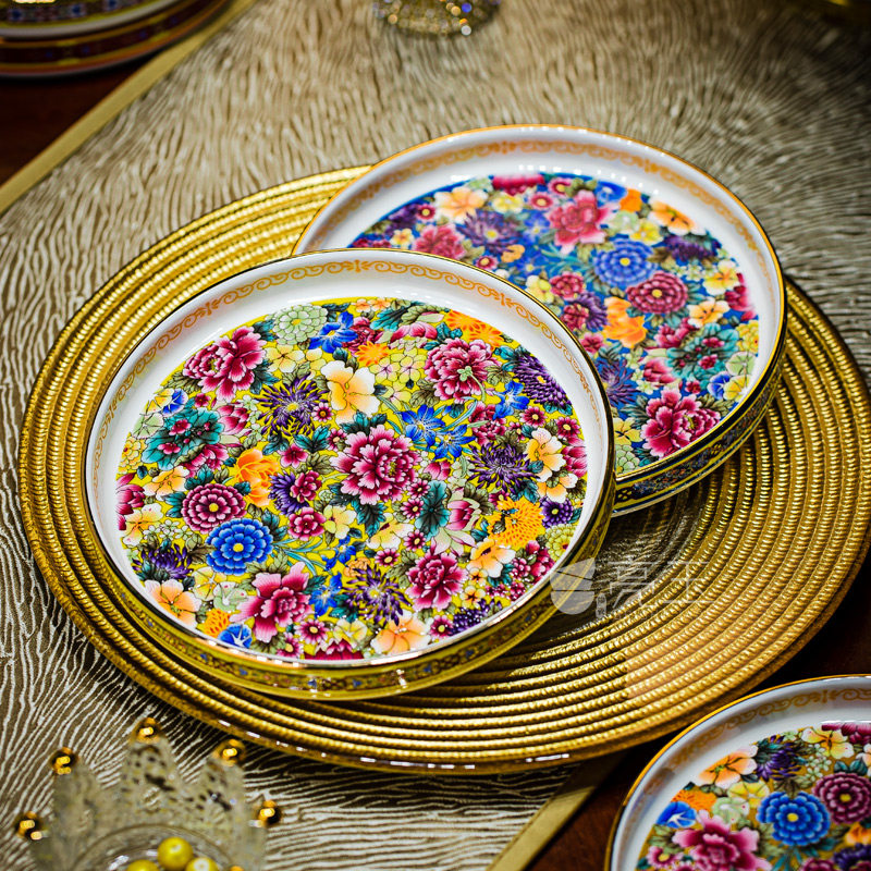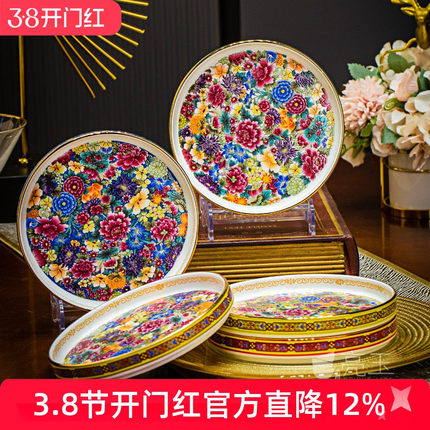 珐琅彩金边骨瓷家用点心盘景德镇中式托盘小吃盘干果盘好看的盘子