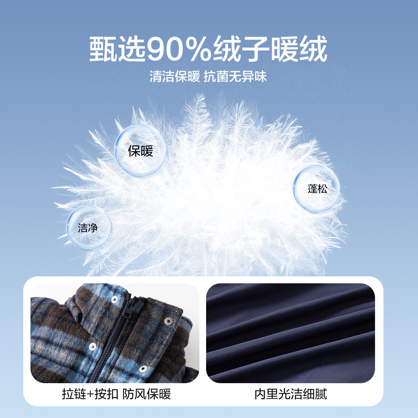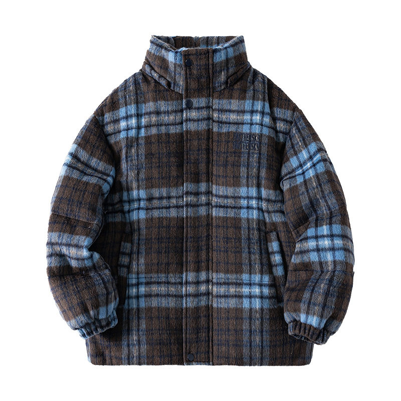 男童冬季韩范毛呢格子面包羽绒服2025新款儿童装短款加厚防寒外套