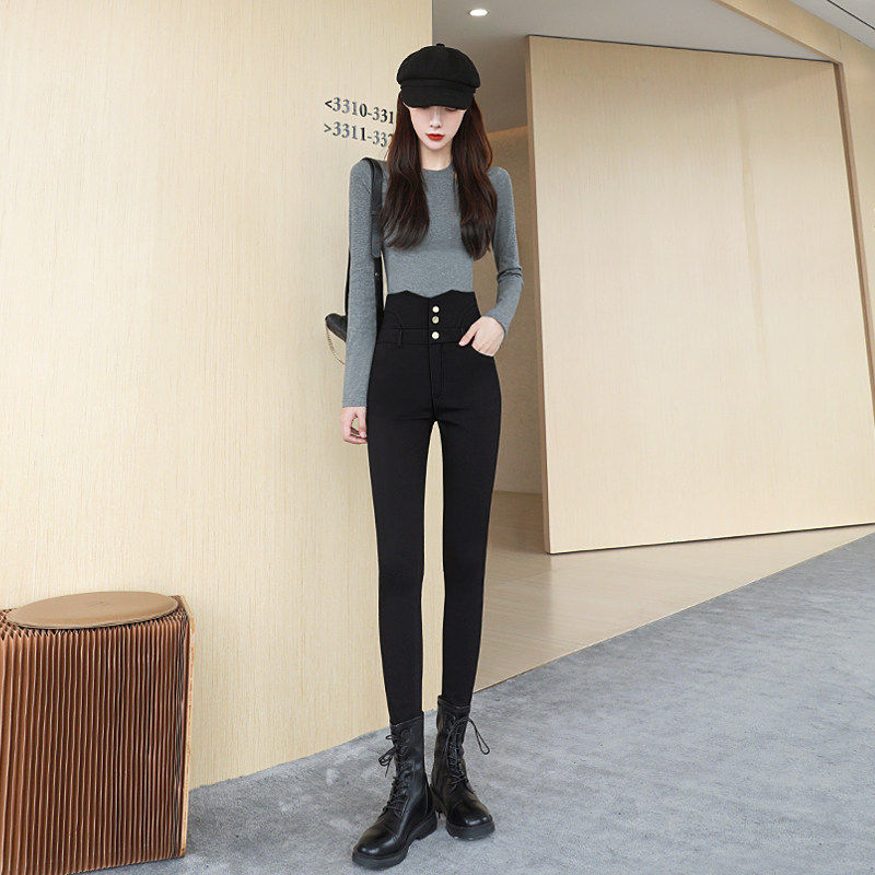 高腰内搭裤女外穿2025新款春秋黑色铅笔裤紧身靴裤弹力小脚小黑裤