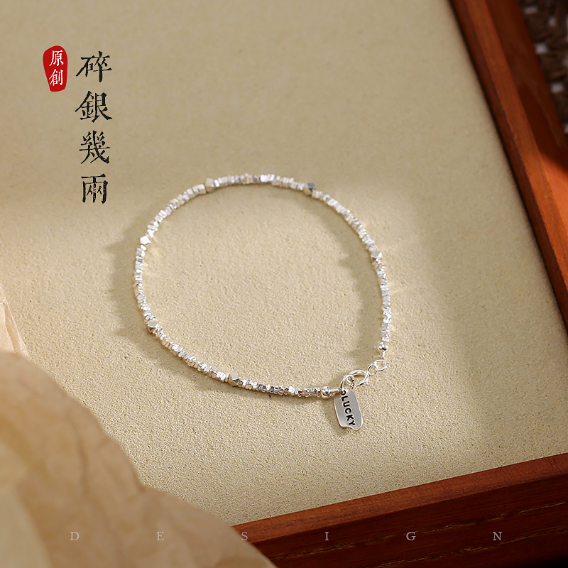 碎银子手链女纯银小众轻奢网红爆款Lucky精致简约学生手串高级感