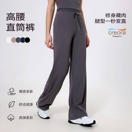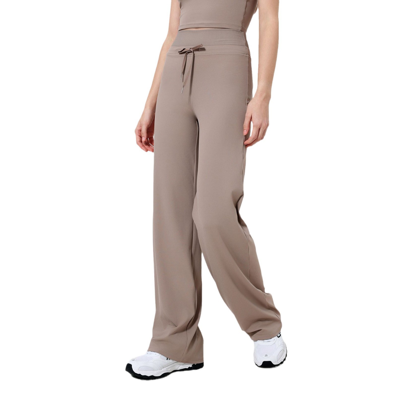 外贸高腰螺纹运动宽松直筒长裤女速干跑步显瘦健身裤带裸感瑜伽裤