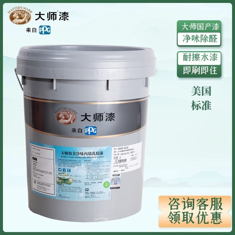 PPG大师漆怡美净味自刷墙面漆环保乳胶漆哑光白色内墙水性漆涂料