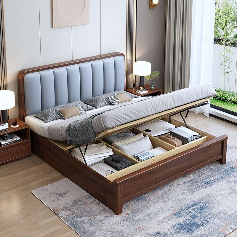 北欧胡桃木实木床现代简约1.5米软靠背床大小户型1.8米储物双人床