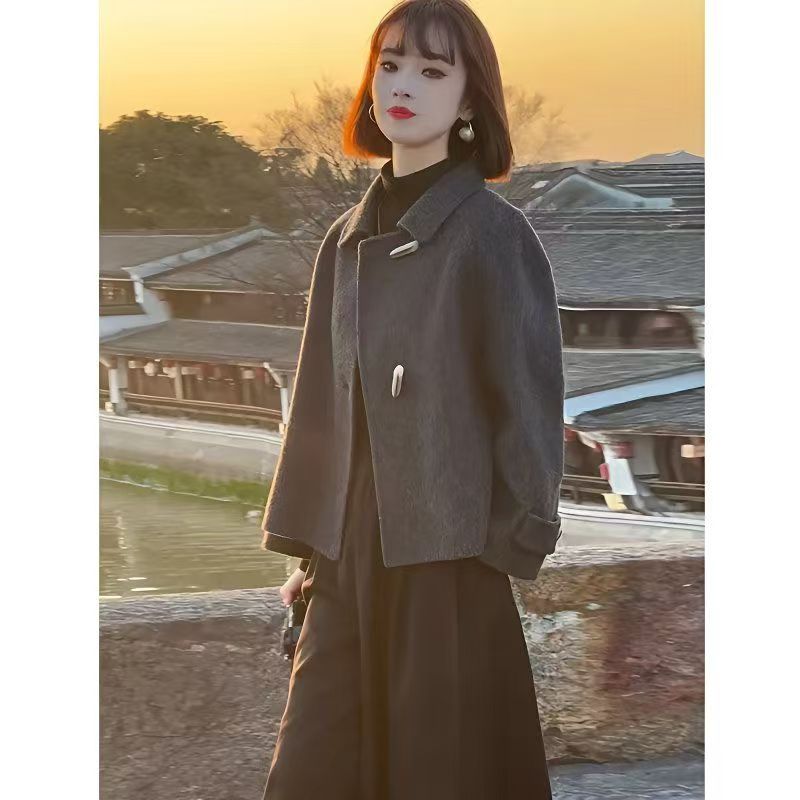 超好看短款毛呢外套女士2025新款高级感小个子灰色呢子大衣秋冬季