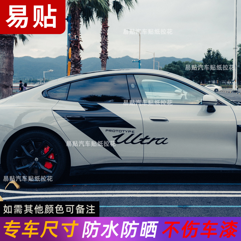 适用于小米SU7拉花车贴闪电侧裙机盖车尾装饰贴纸Ultra改装车身贴
