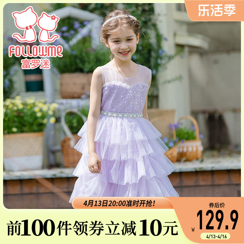 富罗迷女童连衣裙夏季2023新款洋气小女孩网纱公主裙宝宝礼服裙子