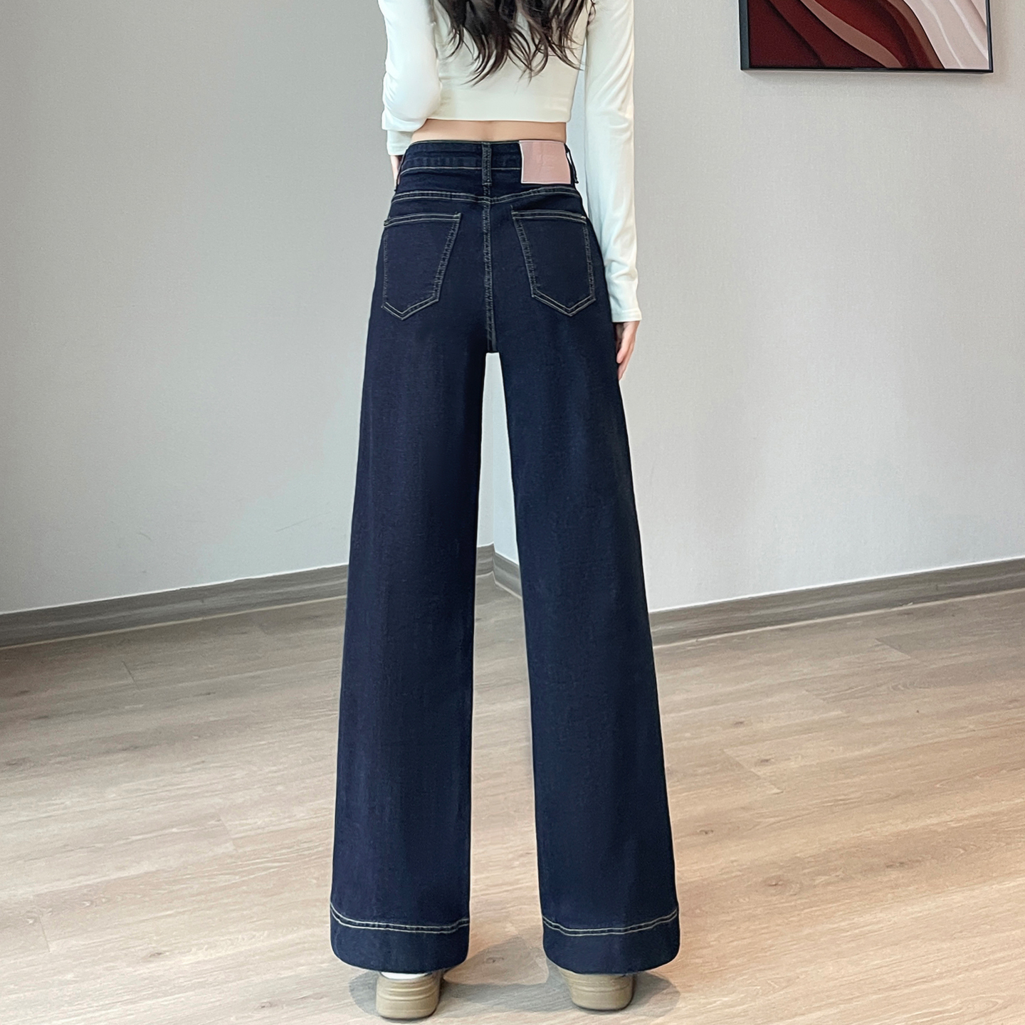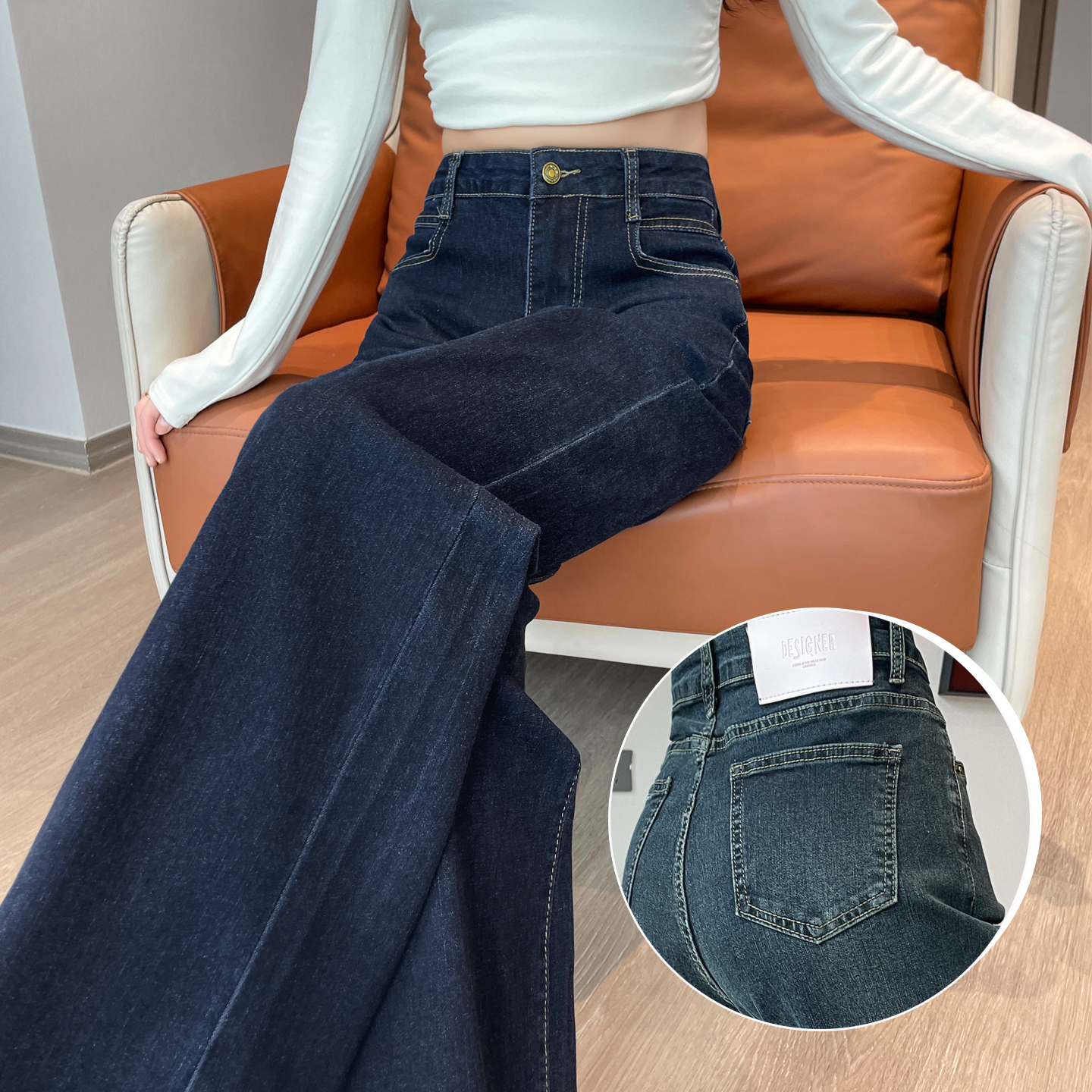 丹宁色小个子直筒牛仔裤女秋加绒
