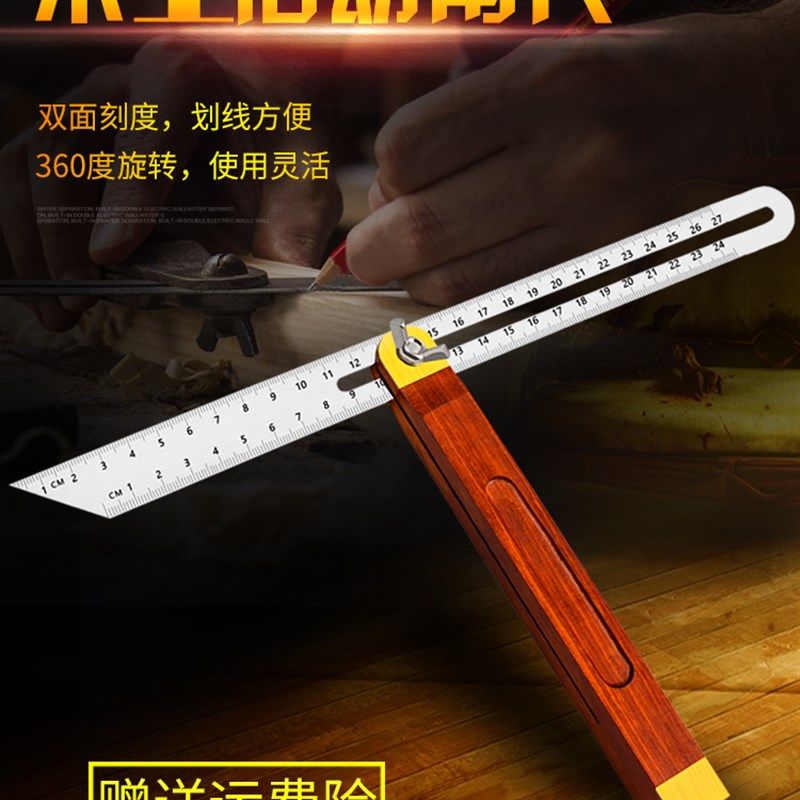 木工角尺红木活动角度尺度调节高精度钢尺滑动测量工具