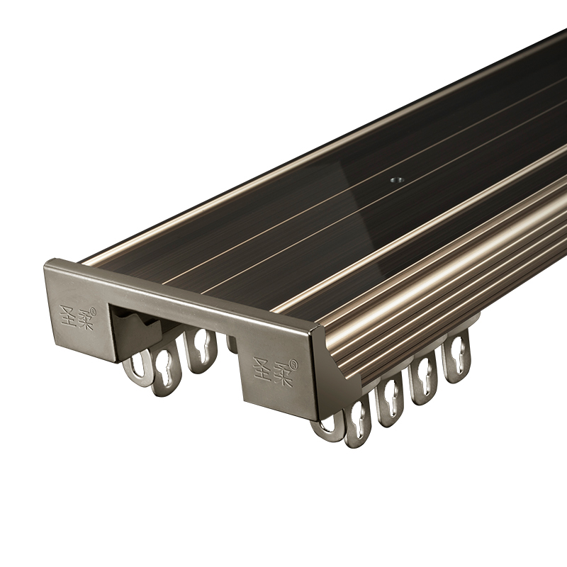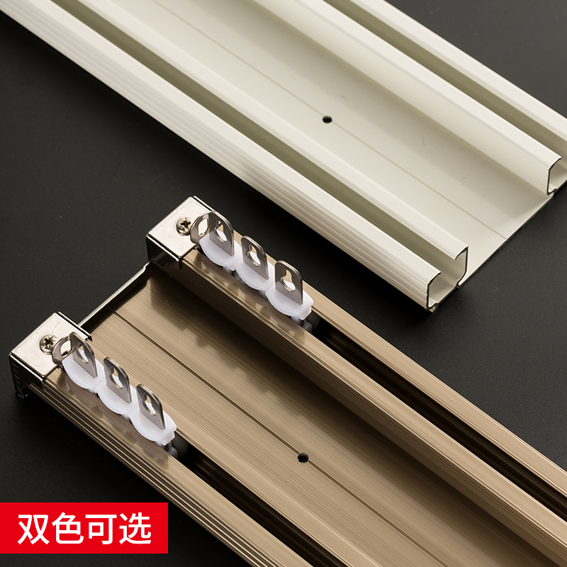 窗帘轨道双轨滑轮直轨重型加厚静音导轨侧顶装窗帘配件铝合金轨道