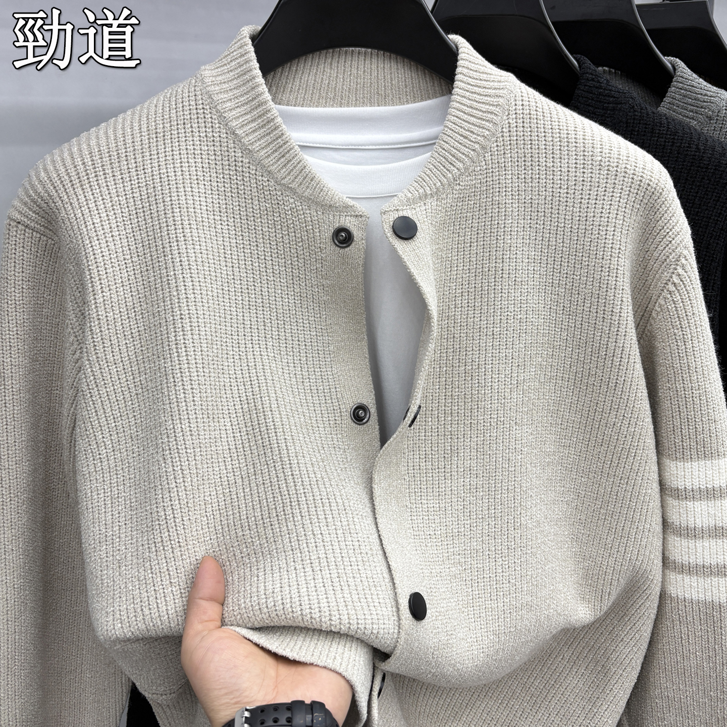 秋冬男士纽扣毛衣开衫复古粗针扣子开衫棒球领针织衫外套百搭休闲