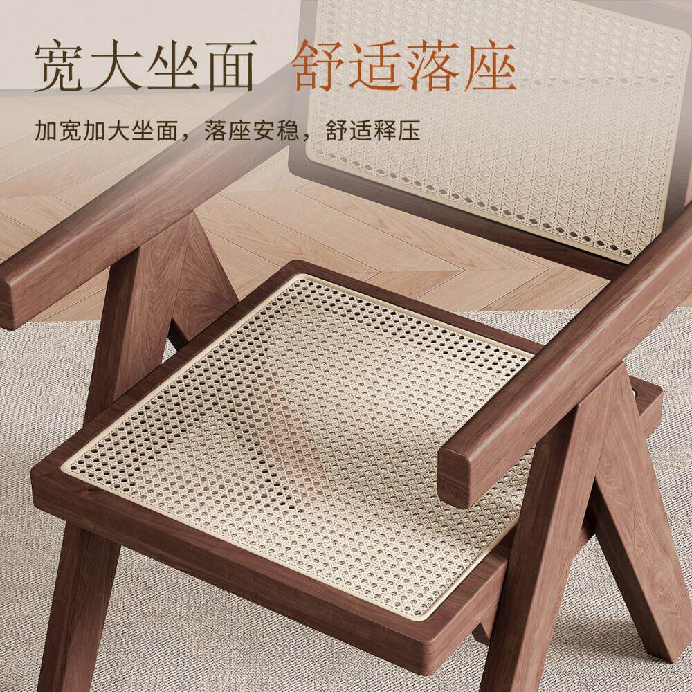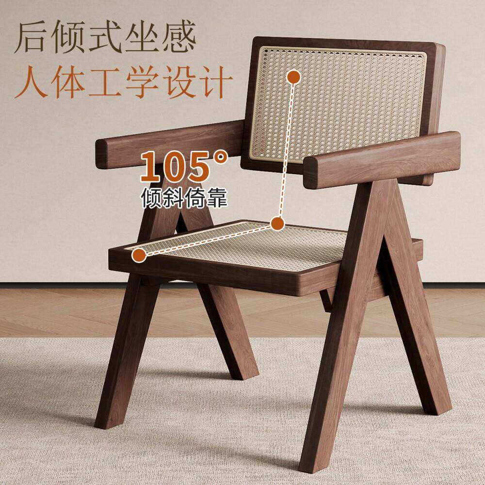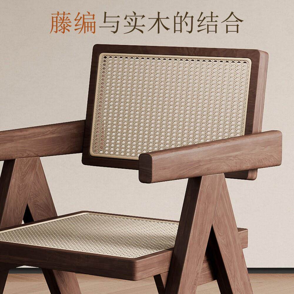 家用扶手书桌椅休闲椅中古实木昌迪加尔椅子藤编餐椅茶椅靠背椅