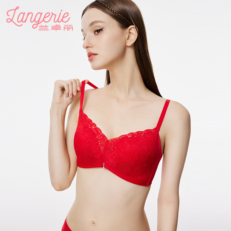 兰卓丽本命年红色内衣女小胸聚拢无钢圈文胸性感蕾丝胸罩收副乳