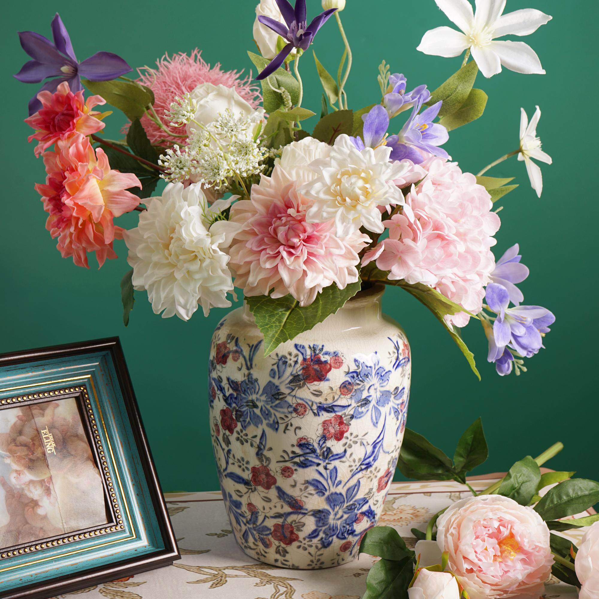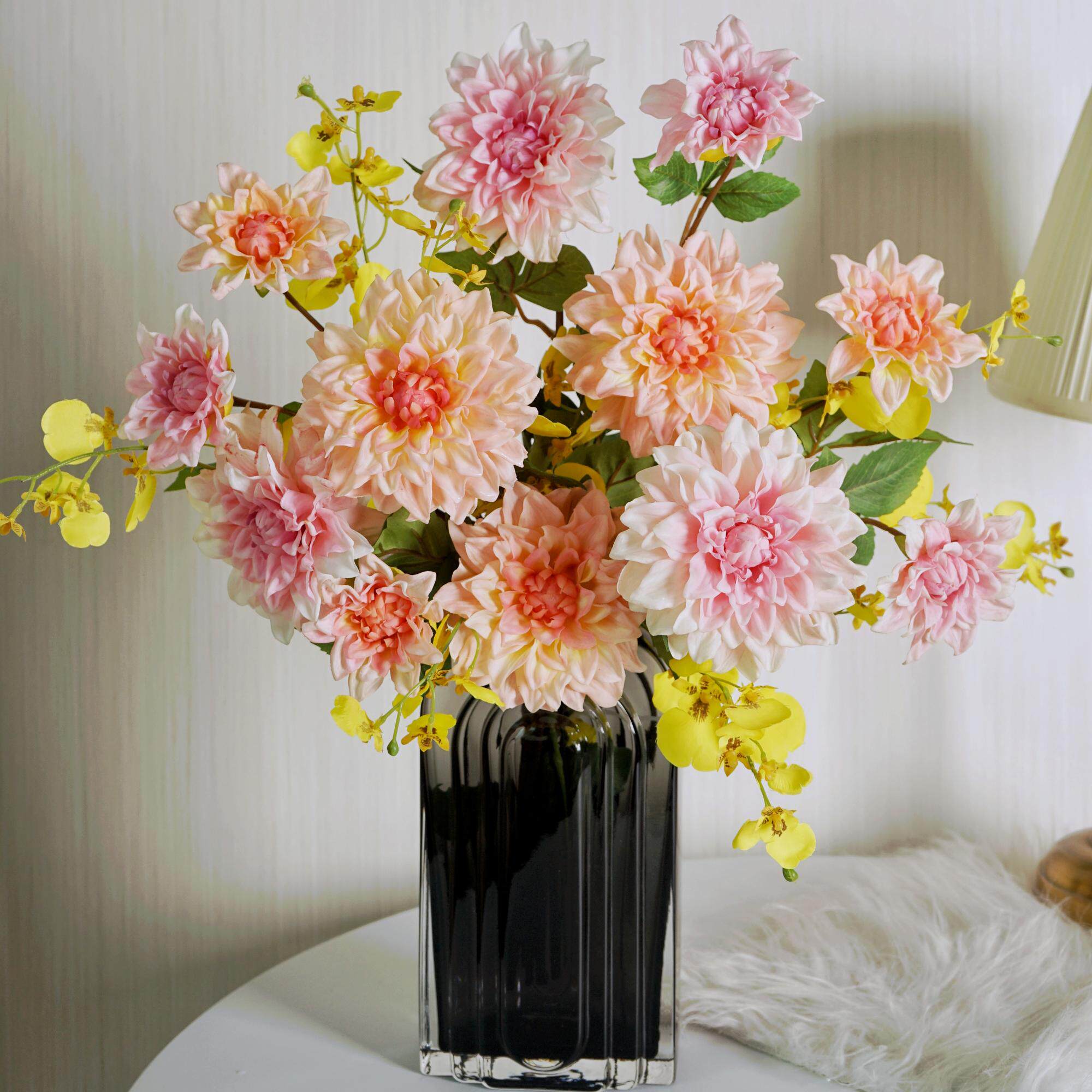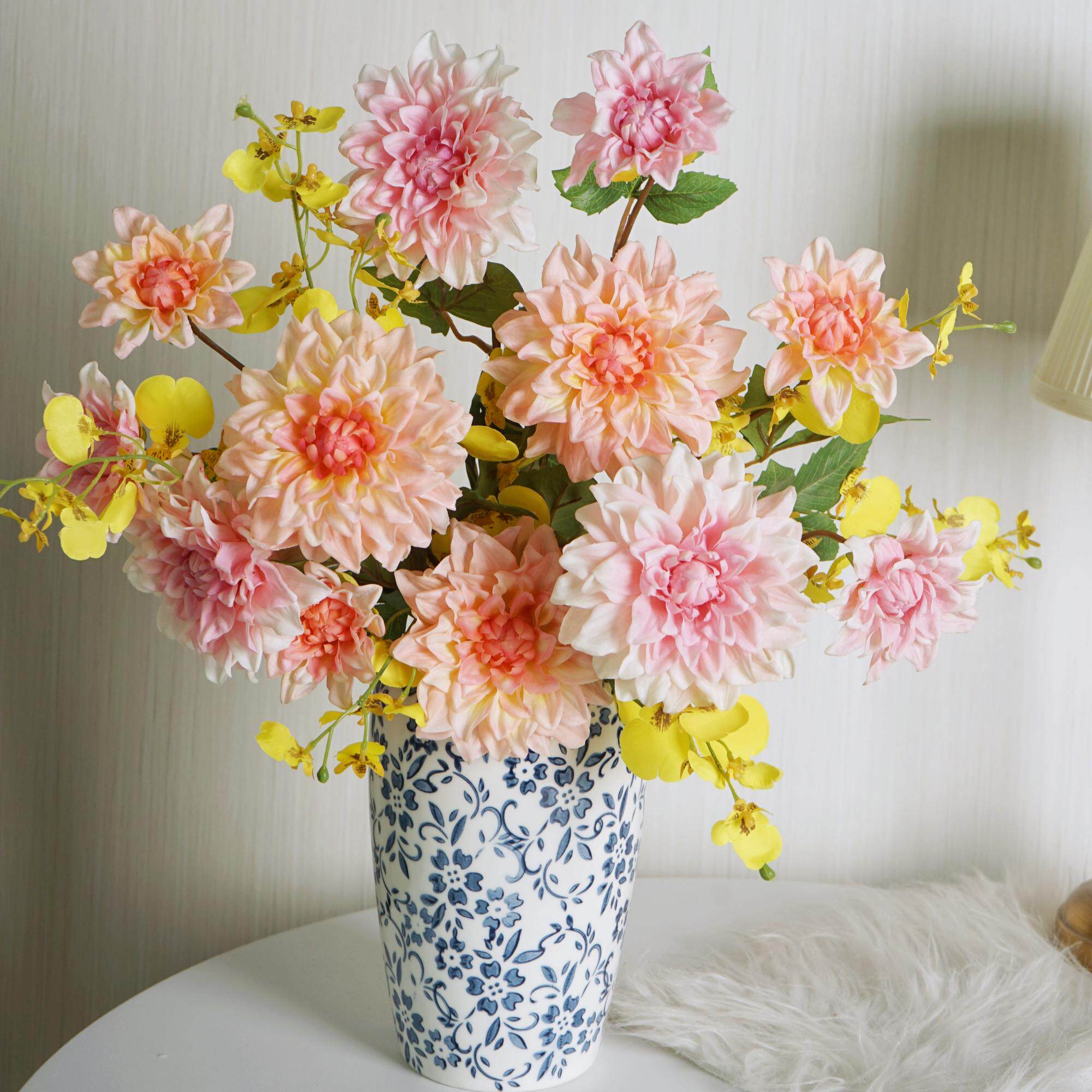 高档湿感手感保湿大丽花客厅玄关餐桌家居装饰花艺仿真花摆件插花