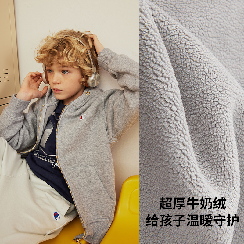 【双11预售】Champion冠军男女童25秋季休闲厚绒连帽拉链卫衣外套