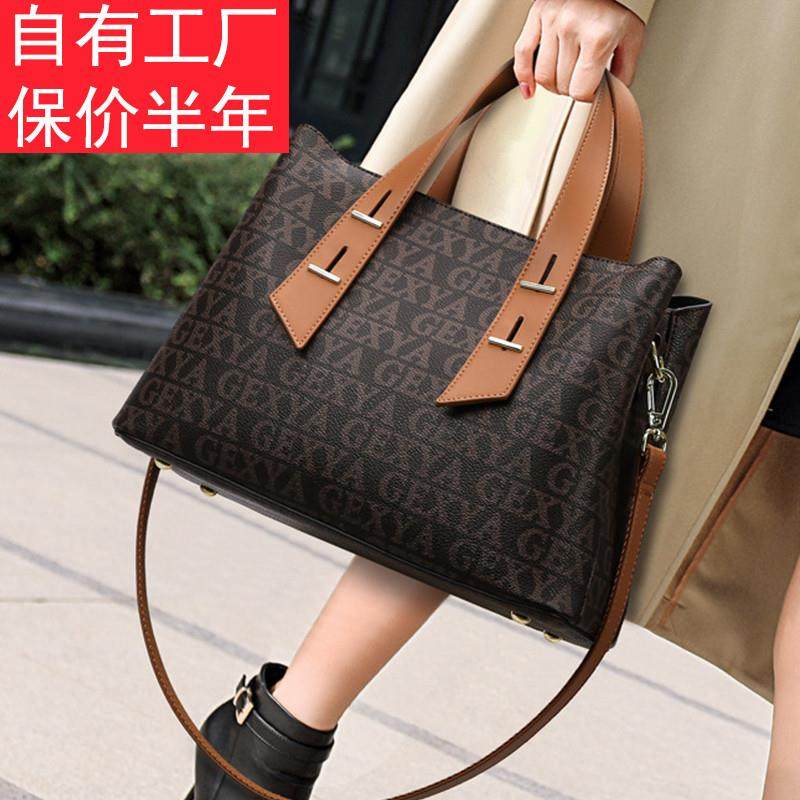新品真皮女包2025新款欧美时尚英伦百搭牛皮气质印花包包手提单肩