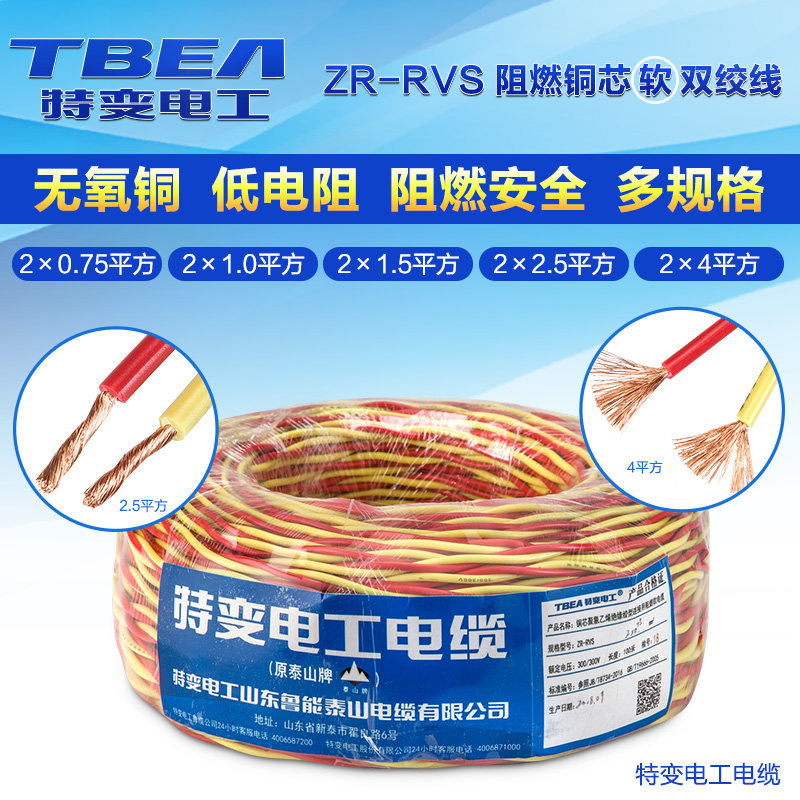 18年生产特变电工电线家用RVS花线纯铜软线2芯多规格双绞线