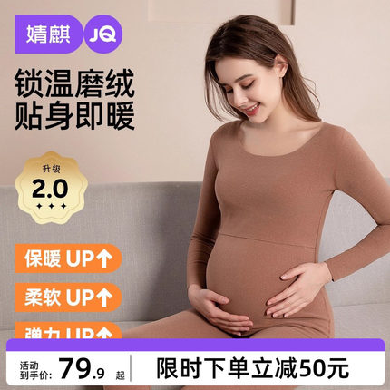 婧麒孕妇保暖内衣上衣秋衣秋裤套装加绒秋冬打底衣产后哺乳睡衣女