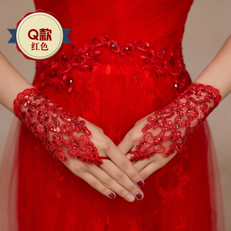 韩式蕾丝新娘婚纱手套红色镂空长短款结婚防晒女手套简约春秋夏季