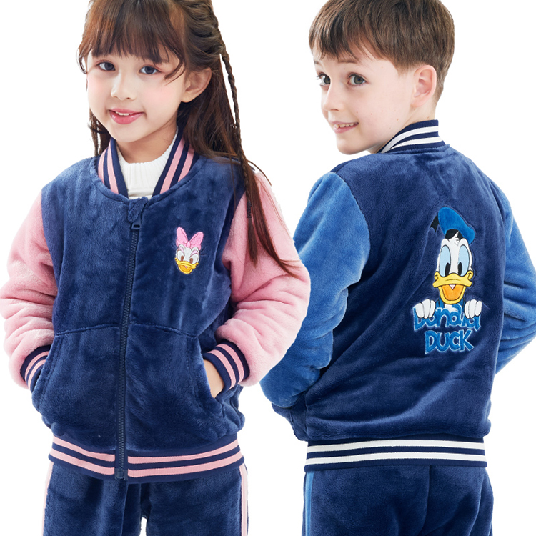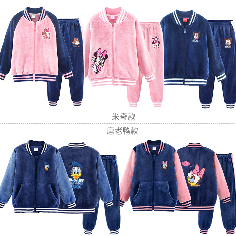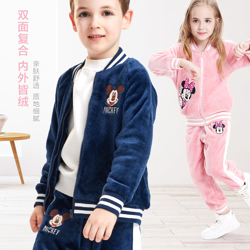 迪士尼女童外套运动裤套装男童秋冬儿童加绒冬季法兰绒卫衣棒球衣