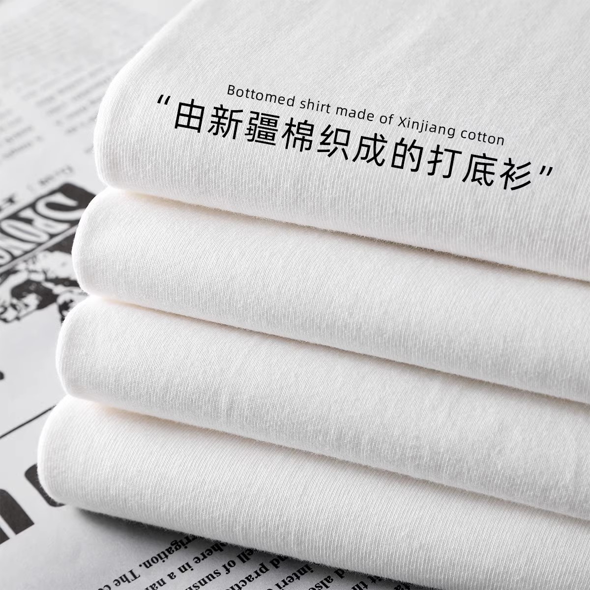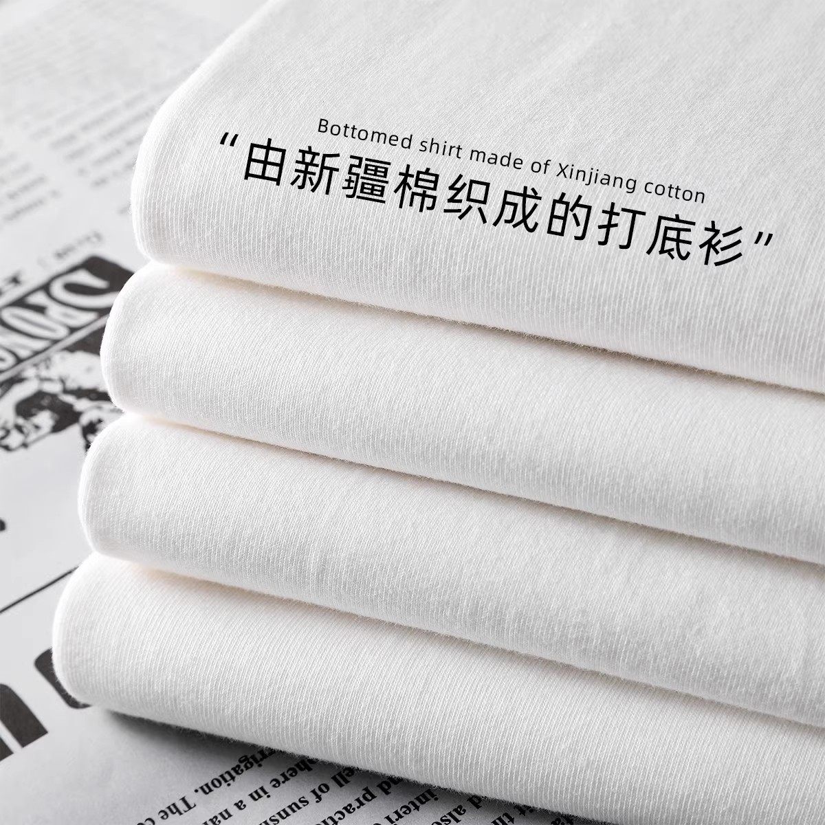 性价比好货!200克纯棉白色短袖t恤宽松小圆领内搭T男女款打底衫