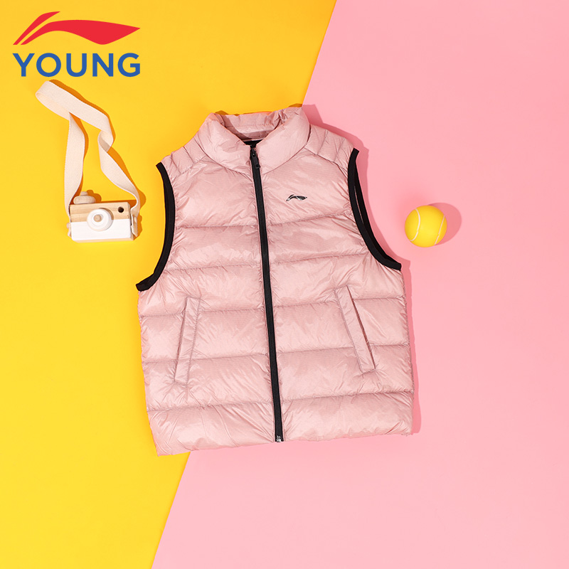 李宁儿童装羽绒马甲2025秋季男女中大童开衫鸭绒保暖坎肩背心外套