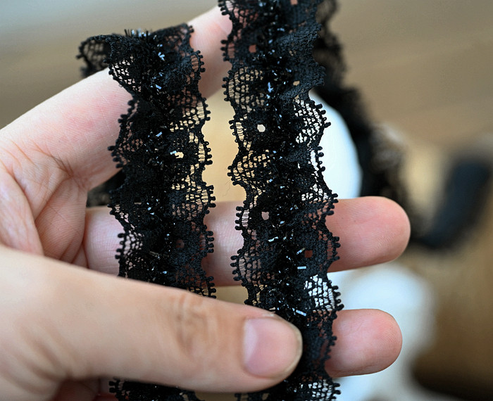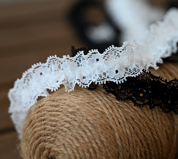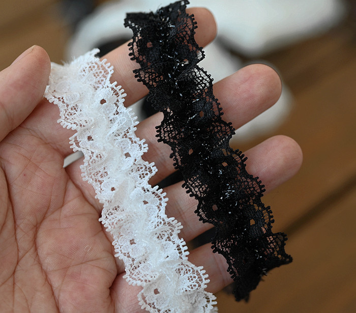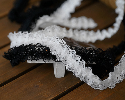 2.5厘米宽 黑白色弹性蕾丝皱褶花边辅料木耳边荷叶松紧带花边带