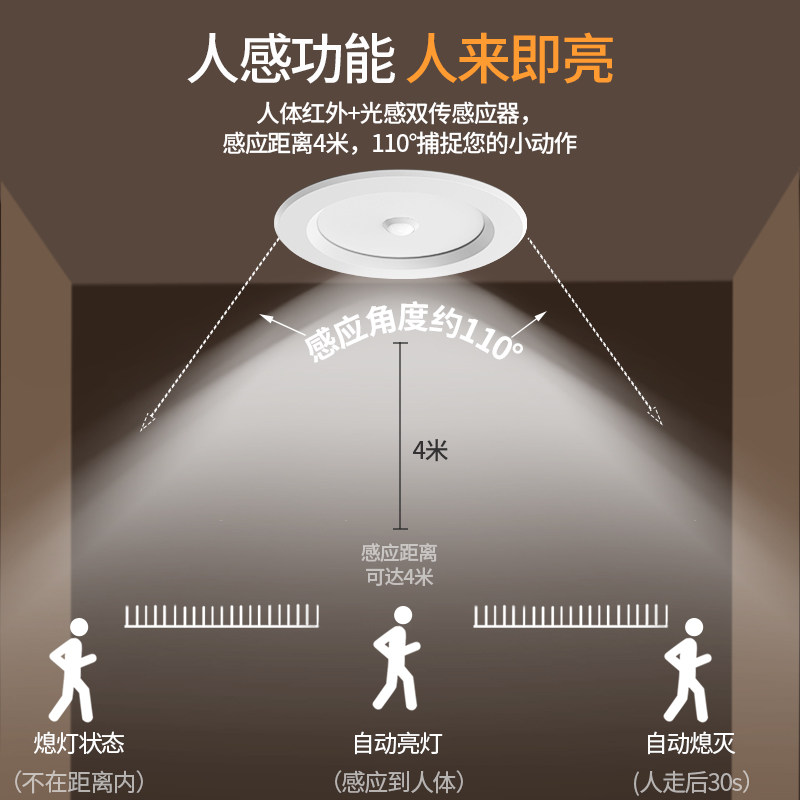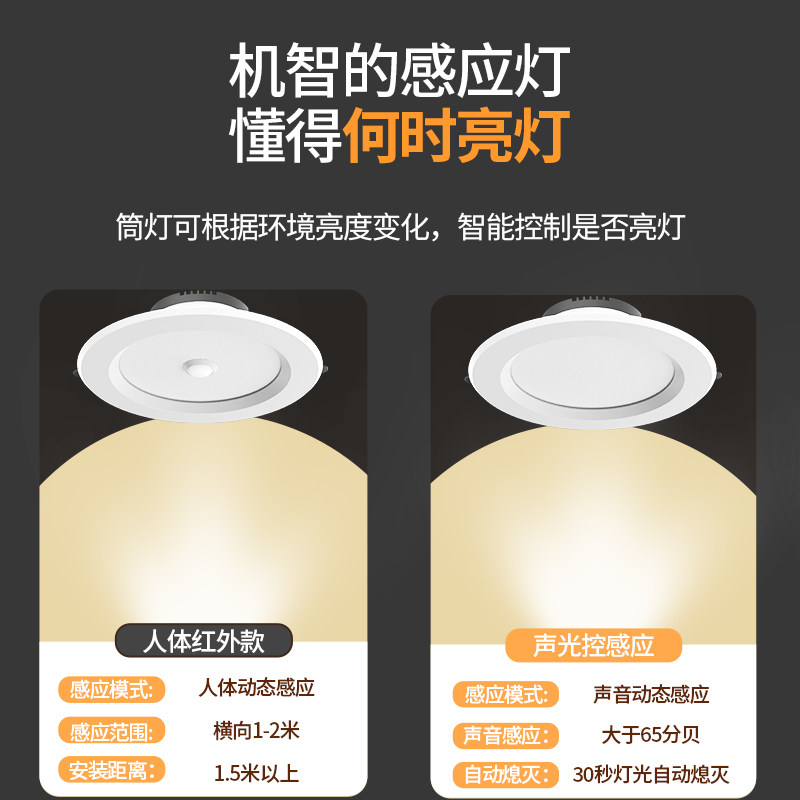 人体感应筒灯嵌入式led射灯客厅家用入户门过道灯玄关走廊声控灯
