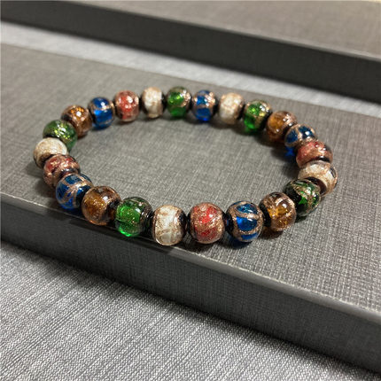 香灰琉璃手串金棕色绿色宫廷定制单圈五色混红蓝黄白棕同款手链