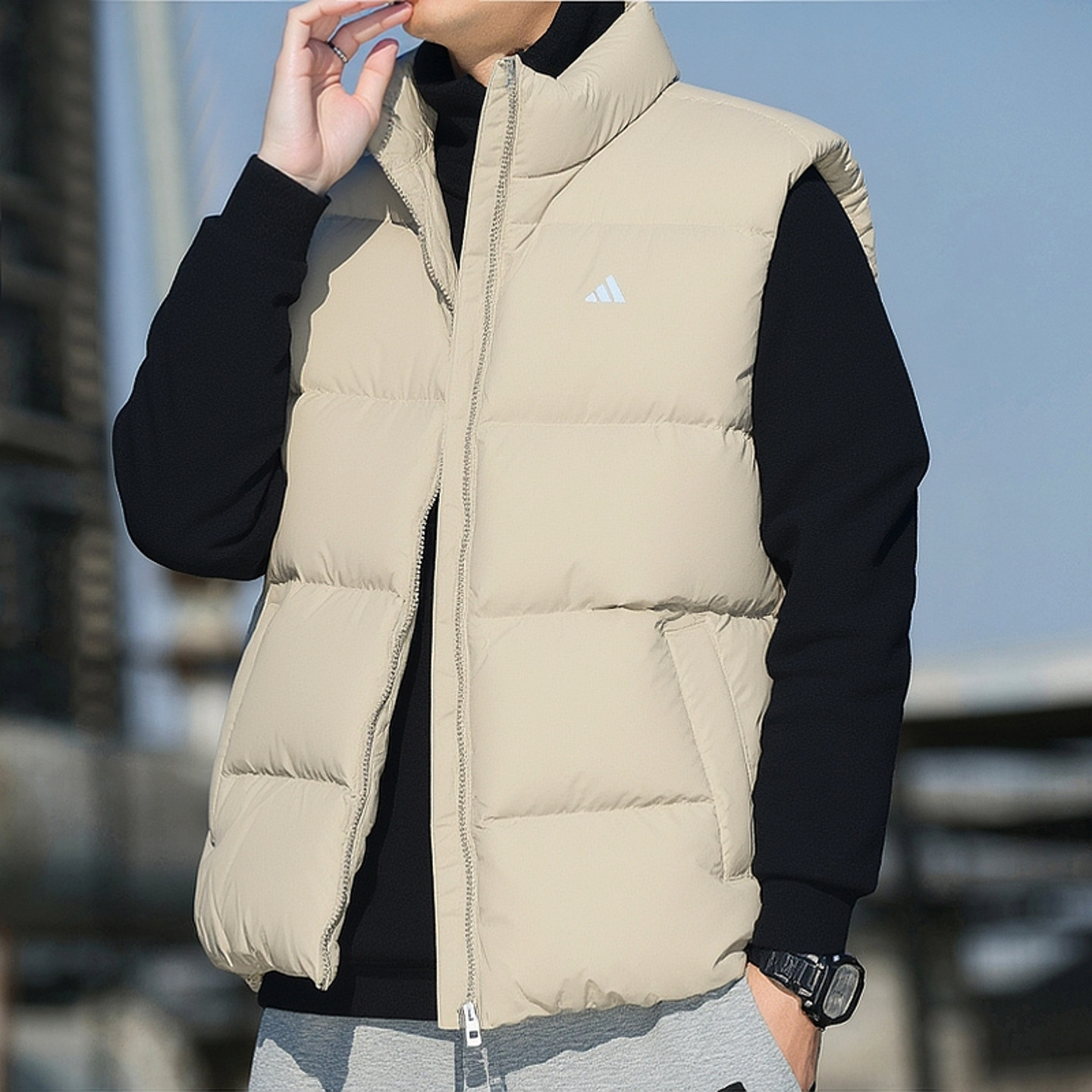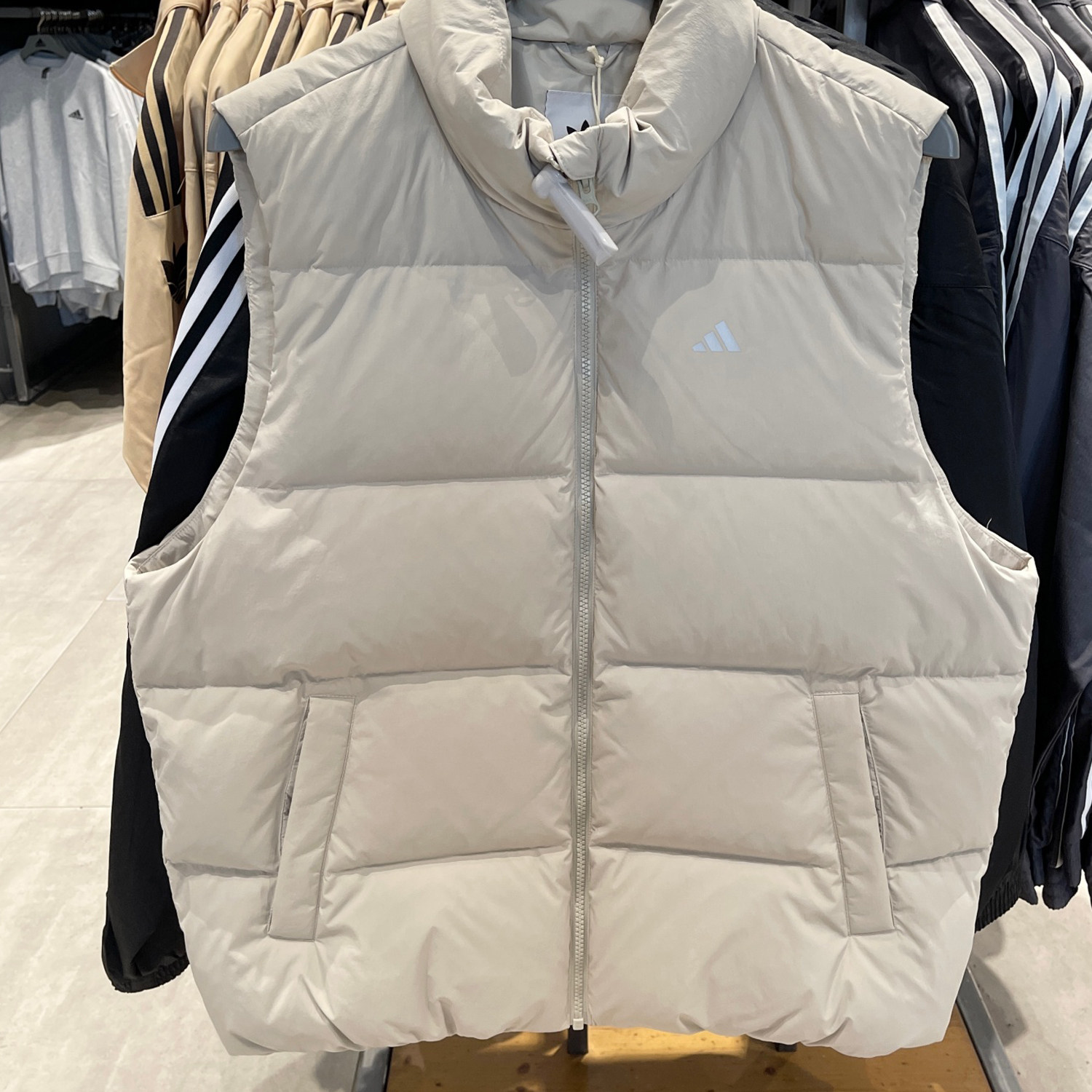 阿迪达斯羽绒马甲男冬季新款宽松美式复古米白鸭绒背心保暖外套