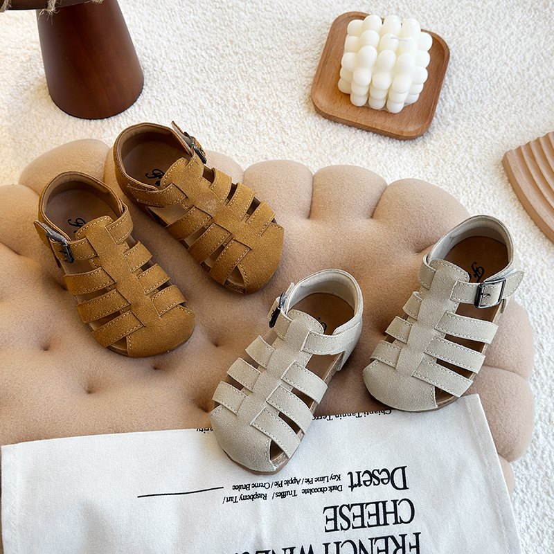 儿童复古包头凉鞋2025夏季新款韩版女童软底博肯鞋男童罗马沙滩鞋