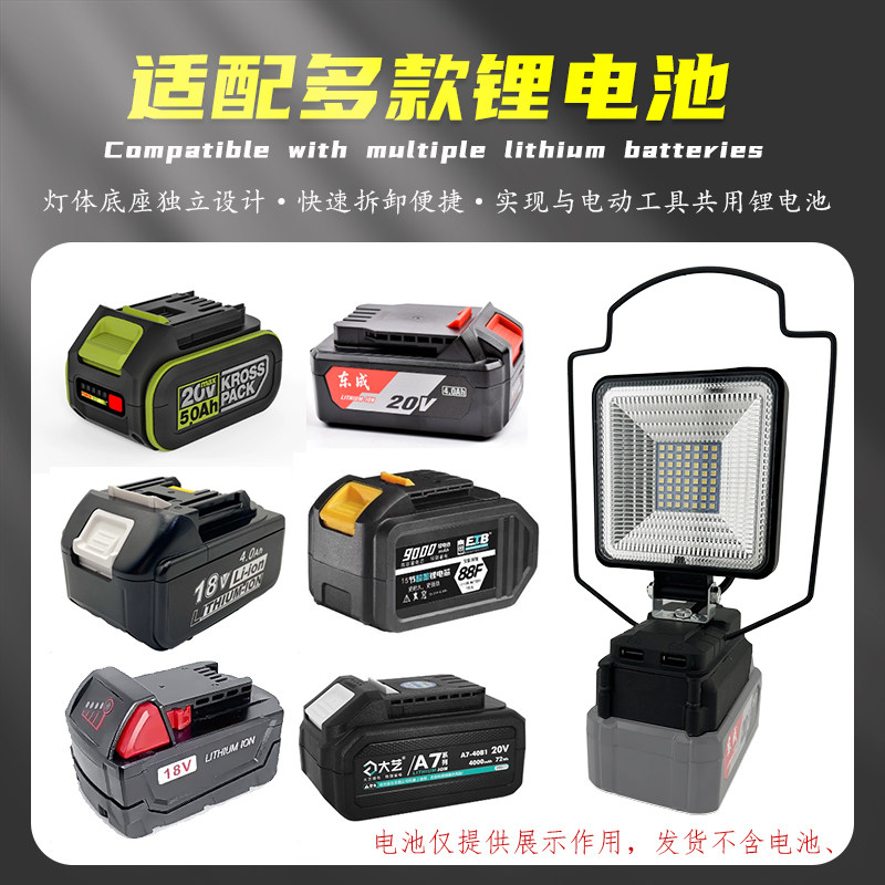 适用牧田大艺威克士东成大有得伟米沃奇锂电池工作灯 LED应急散光