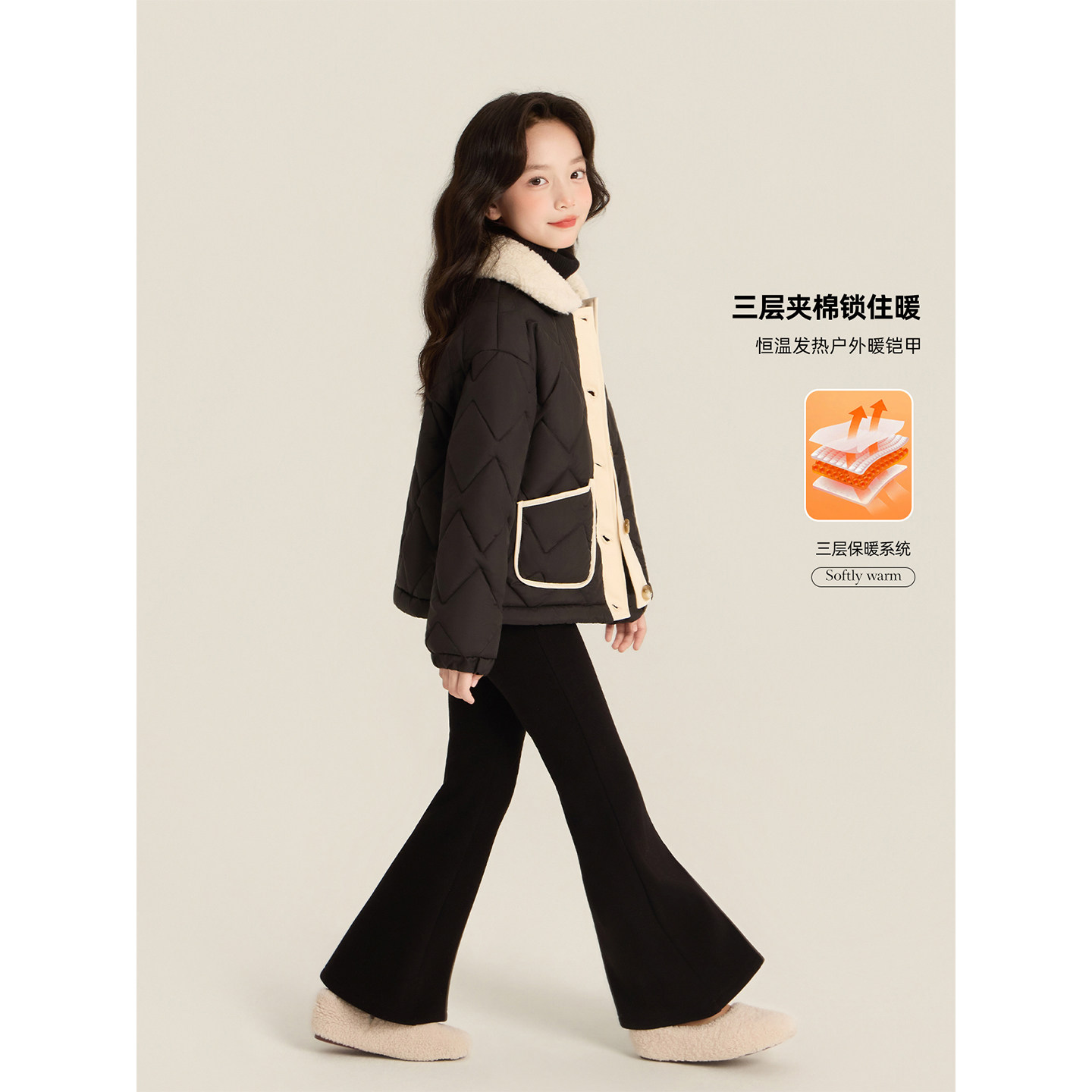 Amybaby女童上衣冬季2025新款小香风减龄毛领保暖超好看棉服外套