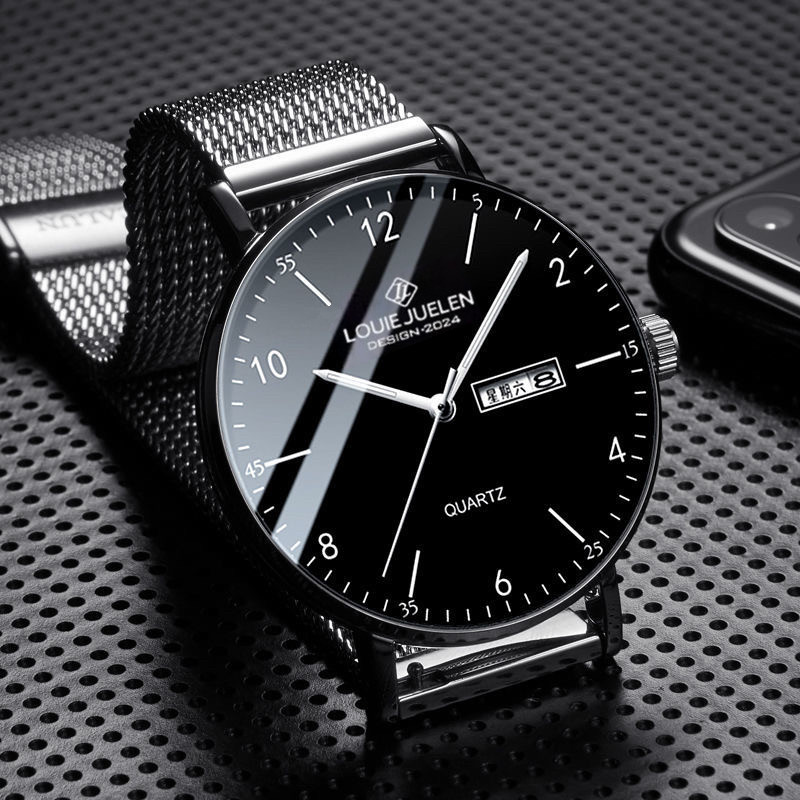 正品瑞士手表男士机械表超薄防水夜光真皮带全自动石英钢带黑武士