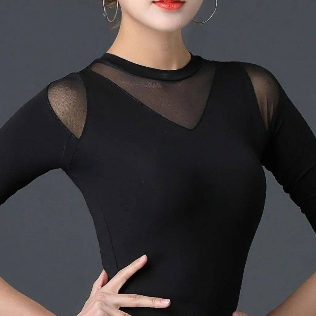 新款国标舞上衣女成人摩登舞蹈服装拉丁舞练功练习服交谊舞